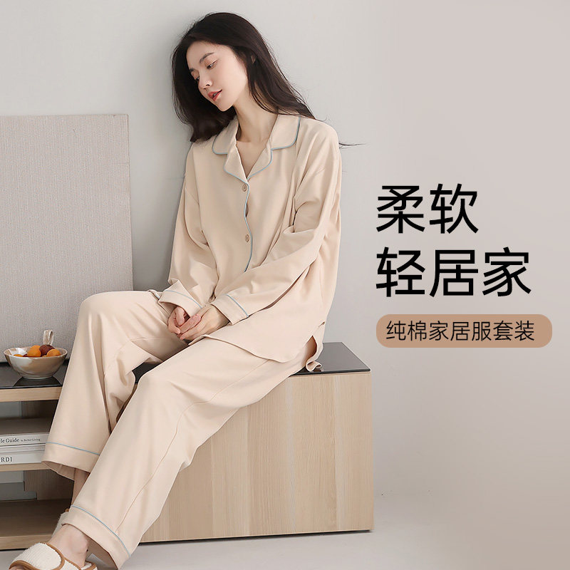 浪莎2025年新款睡衣女款春秋季纯棉长袖家居服秋冬薄款高级感套装
