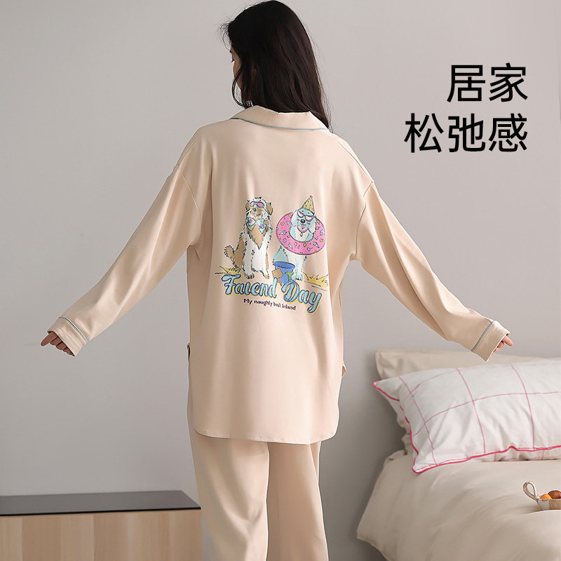 安比斯情侣睡衣舒适纯棉秋季女长袖男女同款休闲家居服套装可出门