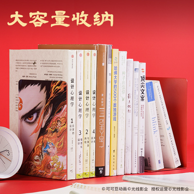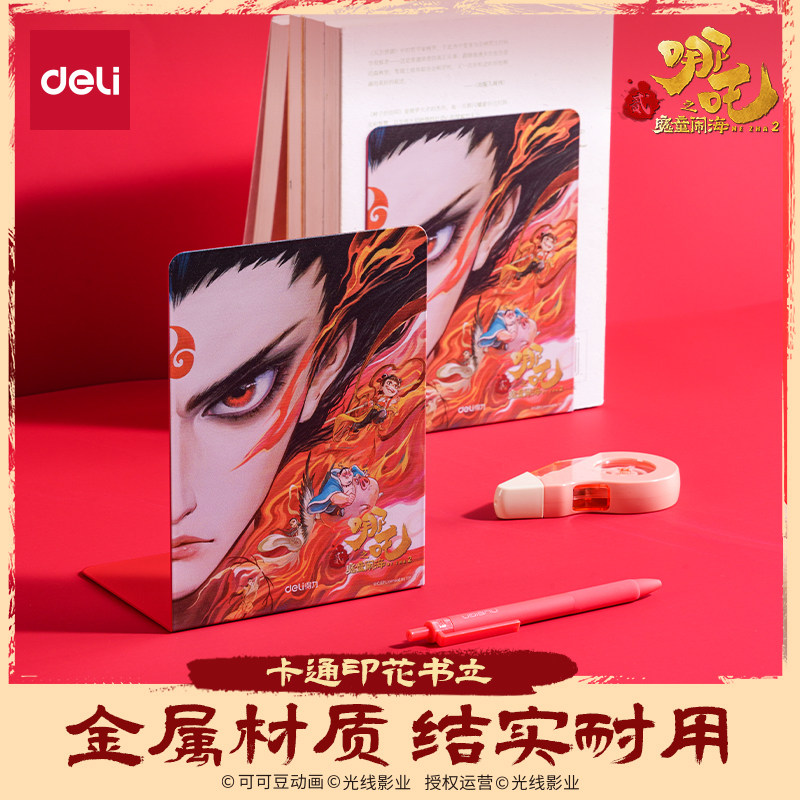 得力书立哪吒大号学生书夹子书靠桌面收纳书本用书架敖丙金属书立