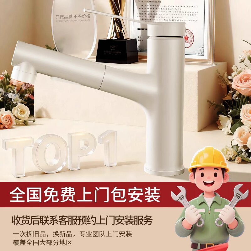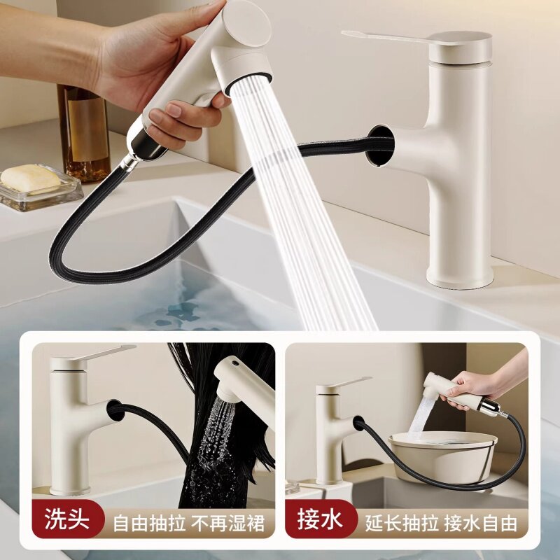 面盆洗手盆冷热抽拉式水龙头家用洗脸盆卫生间台盆浴室双孔台上盆