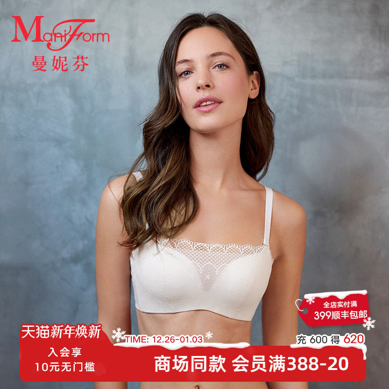 曼妮芬2025春防走光一片式无钢圈性感蕾丝抹胸女文胸内衣20812410