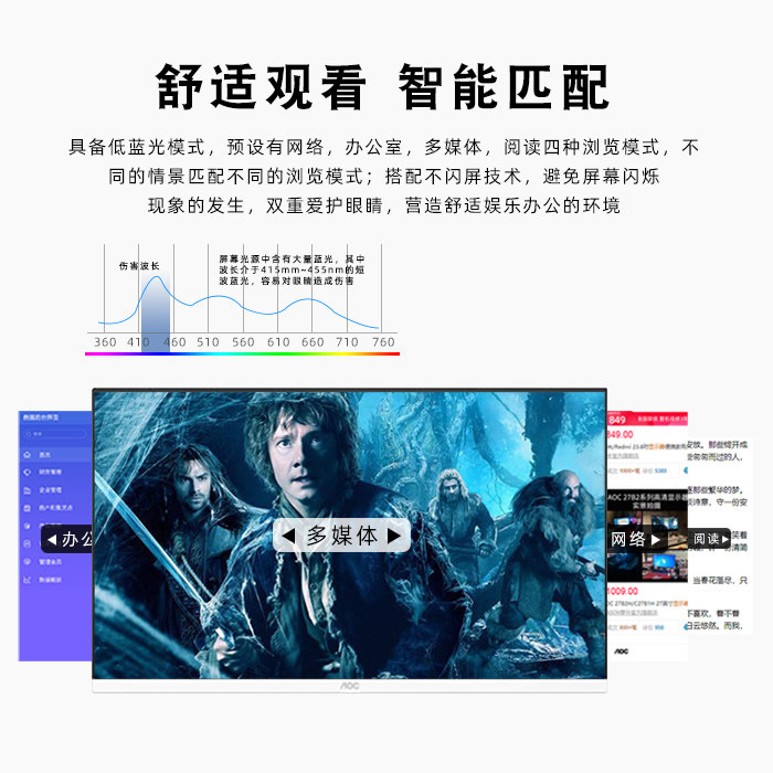 AOC Q27V3/WS 27寸IPS屏75HZ高清2K白色液晶电脑家用高清显示器