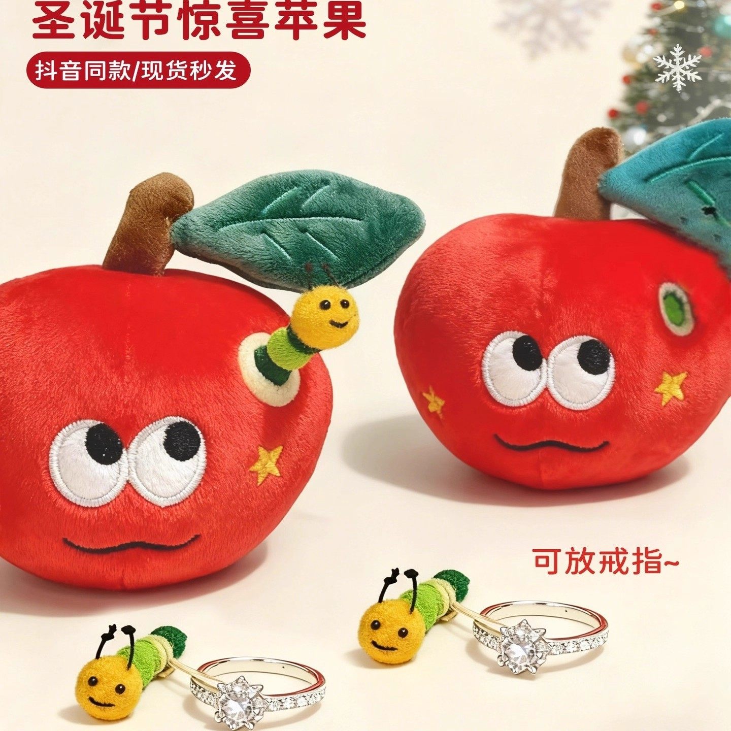 可爱惊喜红苹果挂件毛绒玩具毛毛虫虫子玩偶送女生生日圣诞礼物