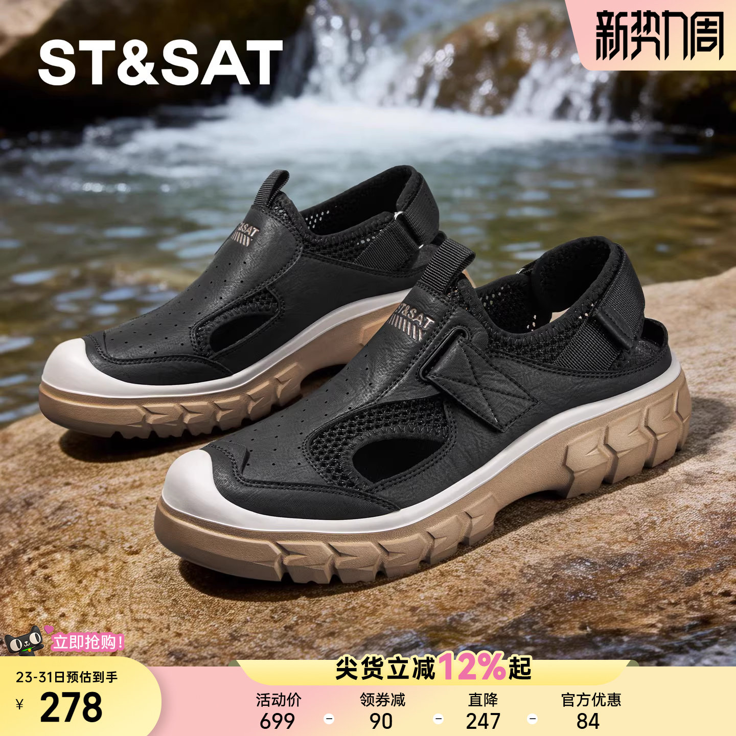 星期六夏季透气网面男鞋2026新款轻便镂空防臭网鞋户外运动凉鞋男