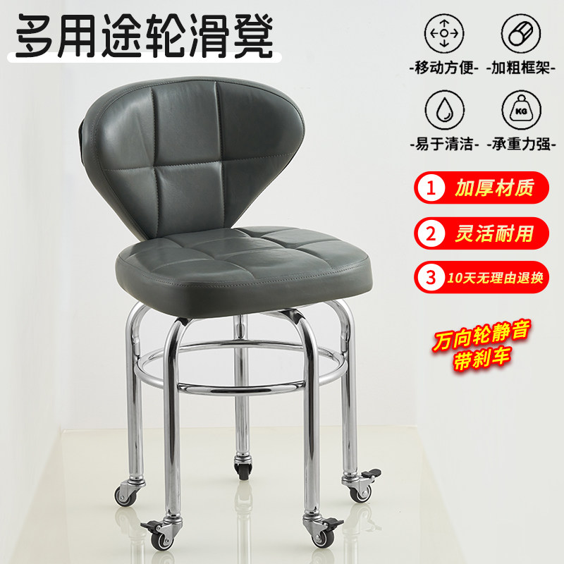 移动椅子静音万向轮凳椅带娃凳子美甲换鞋滑轮凳子带刹车带轮凳椅