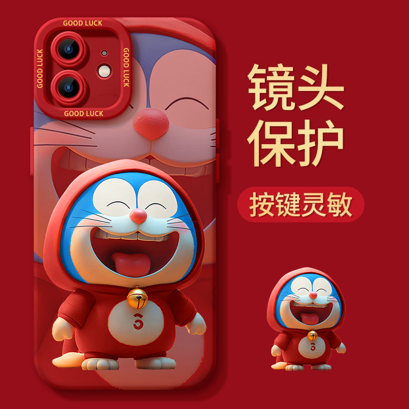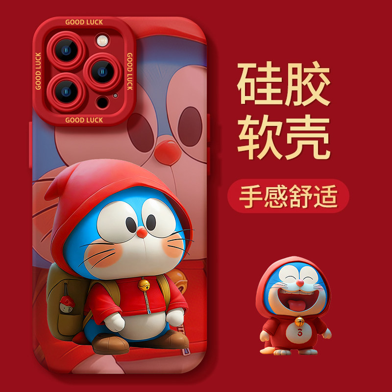哆啦a梦适用苹果15手机壳14瞳影iPhone13硅胶12保护软套11全包Pro防摔max女plus新款Xs红色mini男xr678创意
