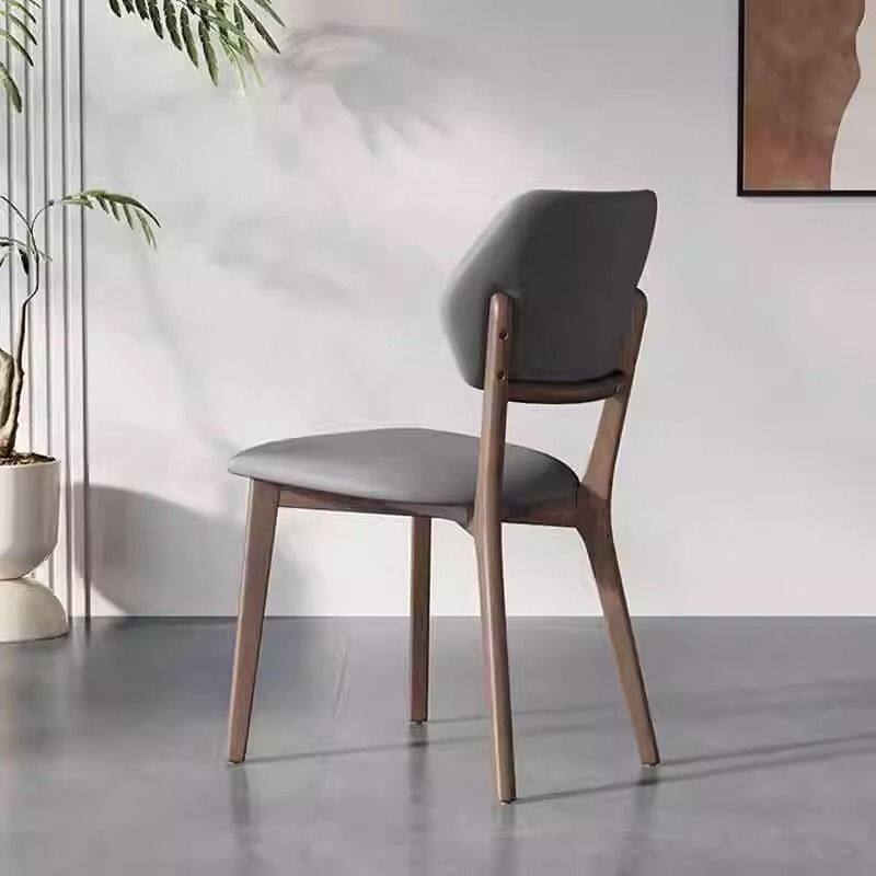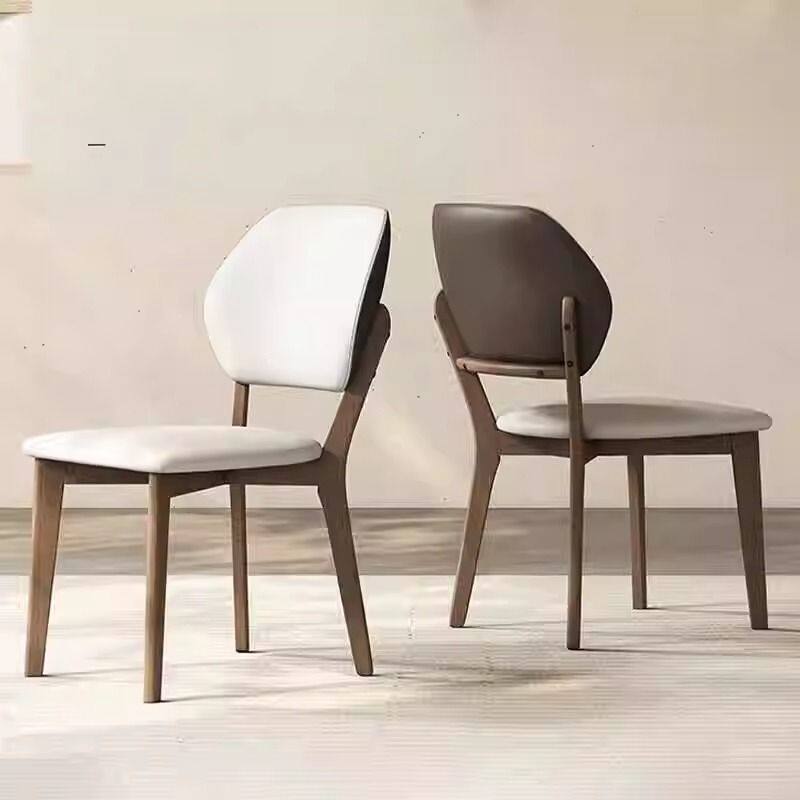 轻奢侘寂风餐椅皮软包设计师现代弯曲木咖啡厅实木椅子家用书房椅