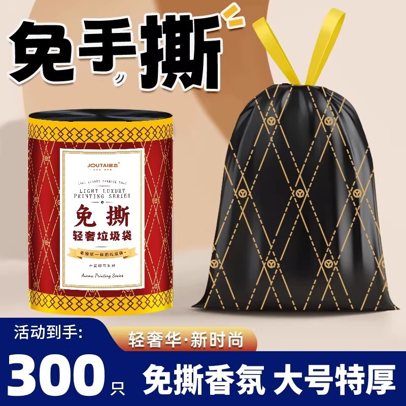 大卷抽绳垃圾袋家用手提式加厚印花大号厨房黑色塑料袋子实惠装