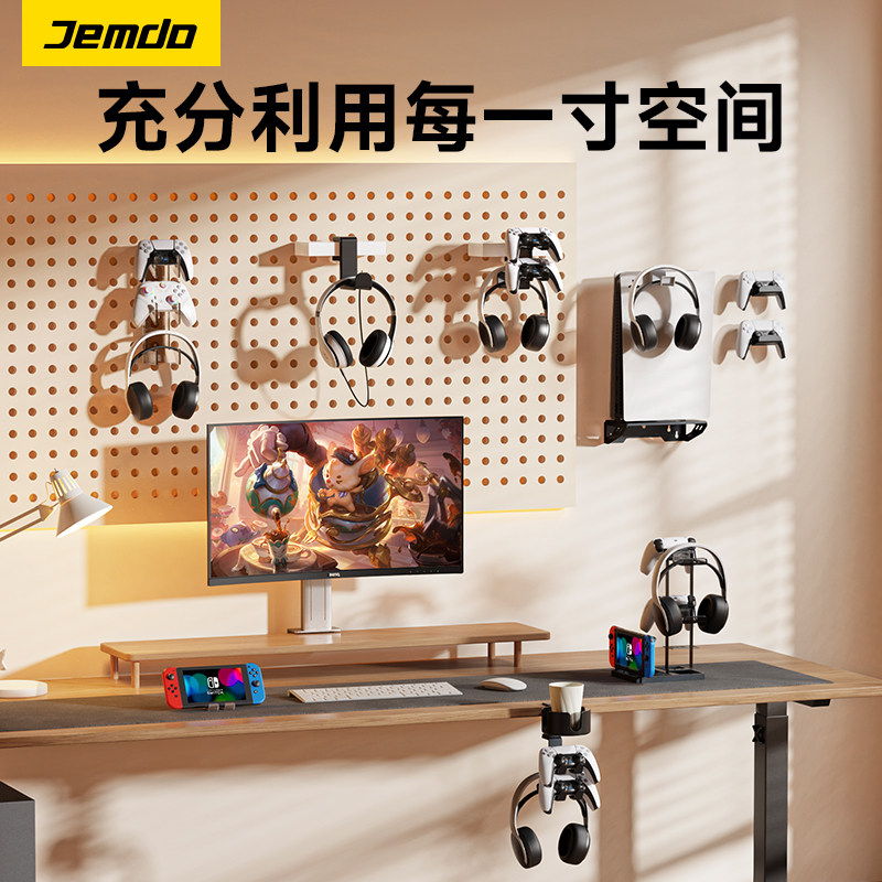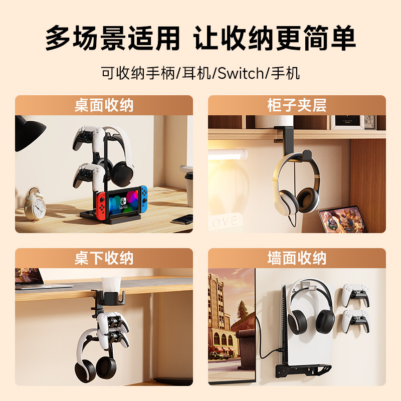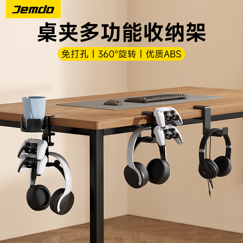 锦读Jemdo游戏手柄支架耳机二合一免打孔桌下适用switch/ps5/ps4挂架xbox置物架托桌面创意放置架子壁挂配件