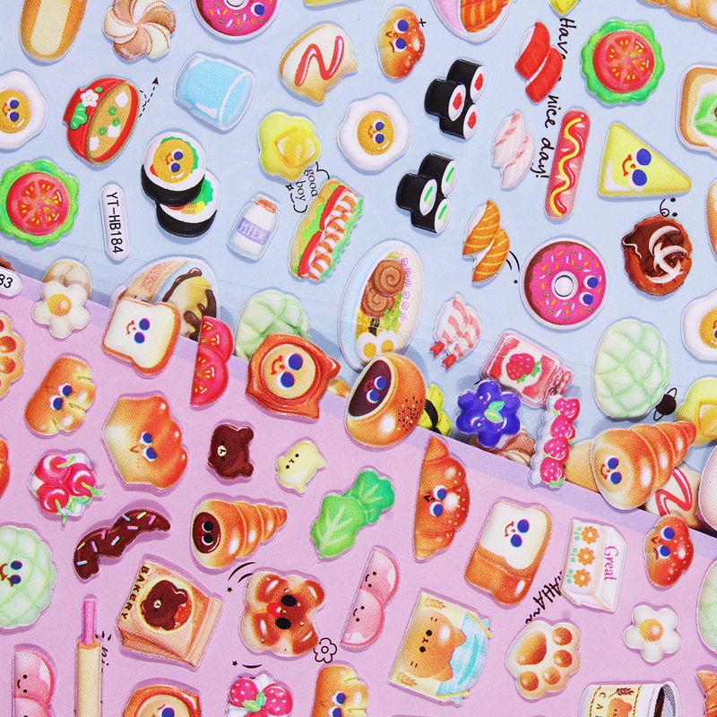 美食迷你泡棉贴画儿童卡通小图案装饰奖励贴纸面包西点可爱贴