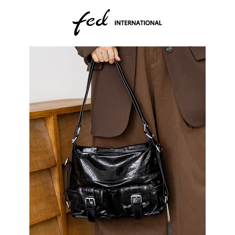 fed头层牛皮水桶包大容量单肩手提斜挎包妈咪包女真皮旅行BFA9135