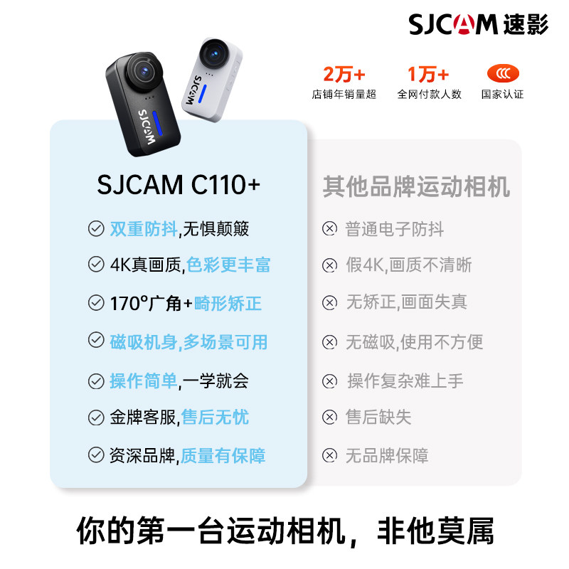 SJCAM速影C110拇指运动相机4K摩托车骑行记录仪vlog非360全景摄像