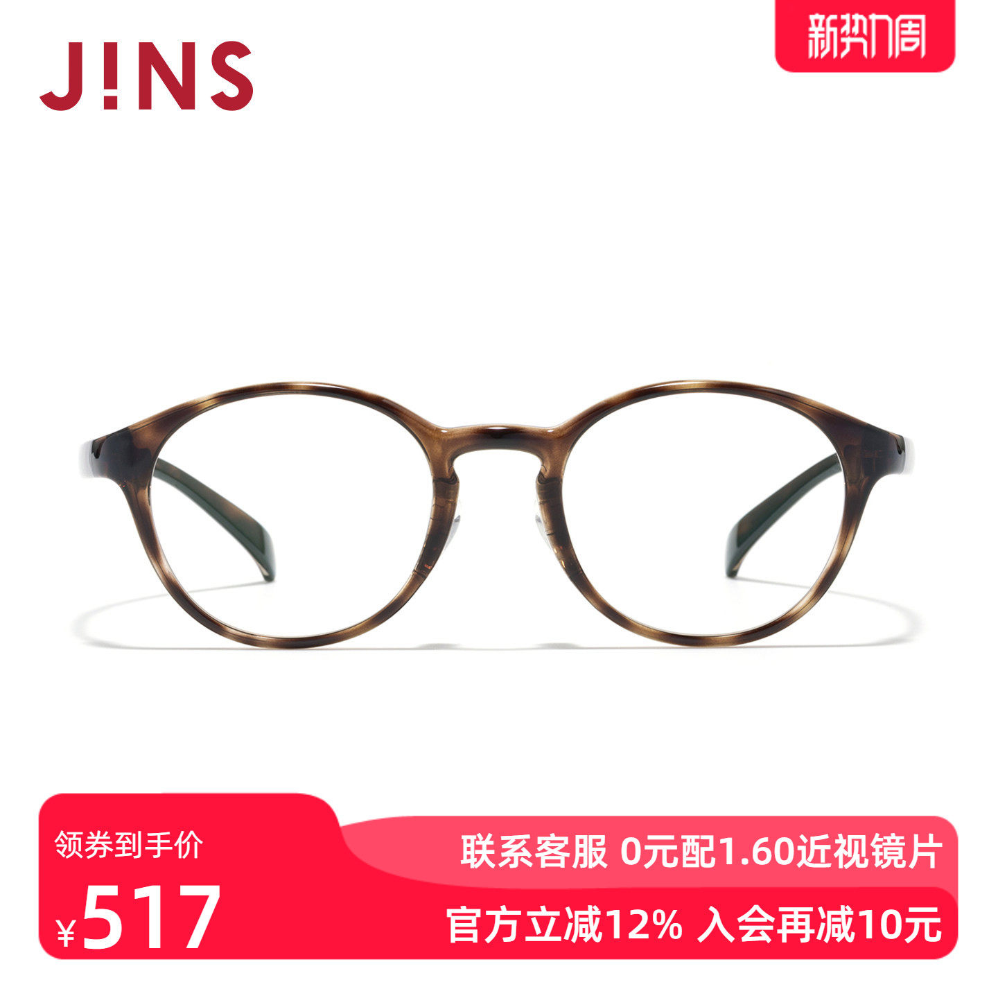 JINS睛姿HOME近视眼镜书呆子小框轻量可加配防蓝光镜片UGF25A162