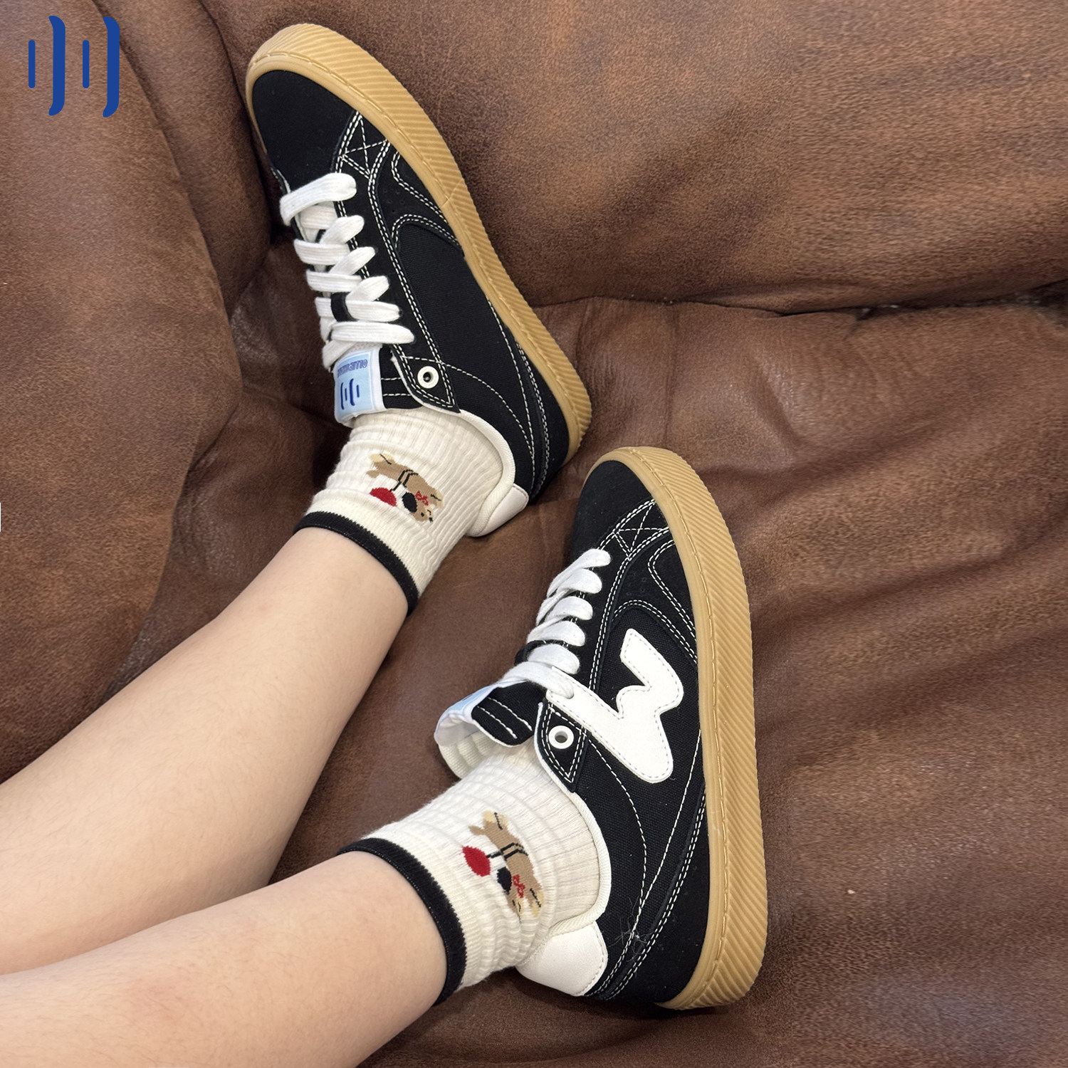 顽刻官方轻质黑色生胶秋季校园风W系列低帮男女国潮滑板鞋