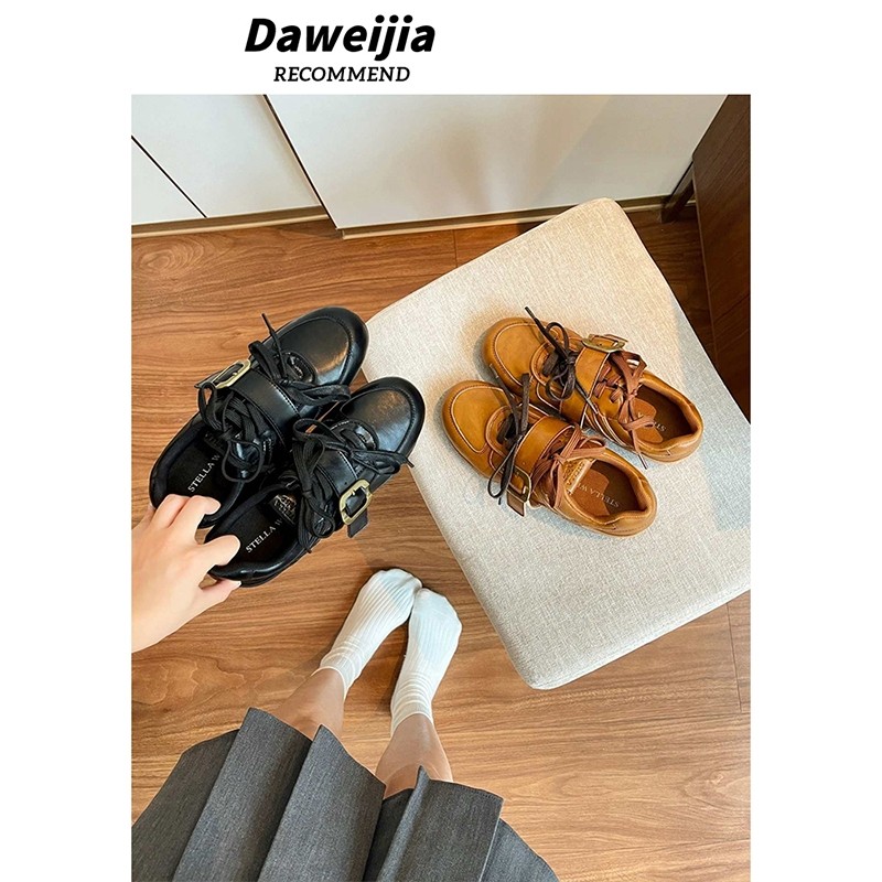 大薇家女鞋皮带扣双鞋带美式复古德训鞋平底时尚休闲鞋2025新款秋
