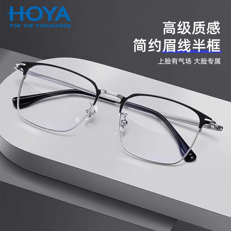 HOYA豪雅镜片经典方形超轻防蓝光可配度数镜片潮流男镜框架89557
