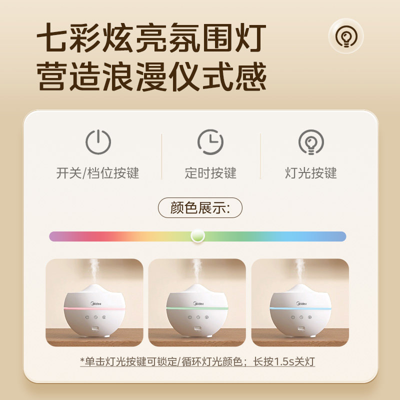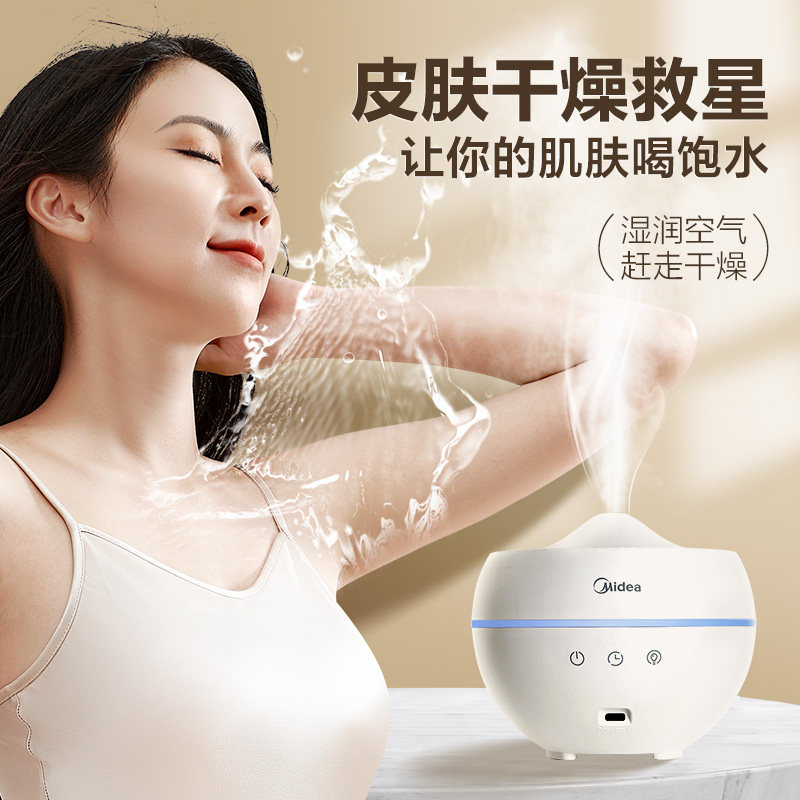美的小型加湿器卧室内静音家用房间迷你办公室桌面宿舍学生空气婴儿孕妇香薰机精油一体生日礼物女生2025新款