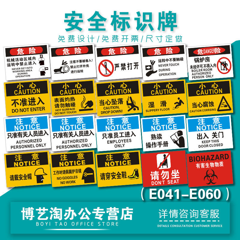 注意禁止打开有害生物危害只准相关人员进入出入关门危险请勿坐 安全标识标识标志提示警告警示牌子E041-E060