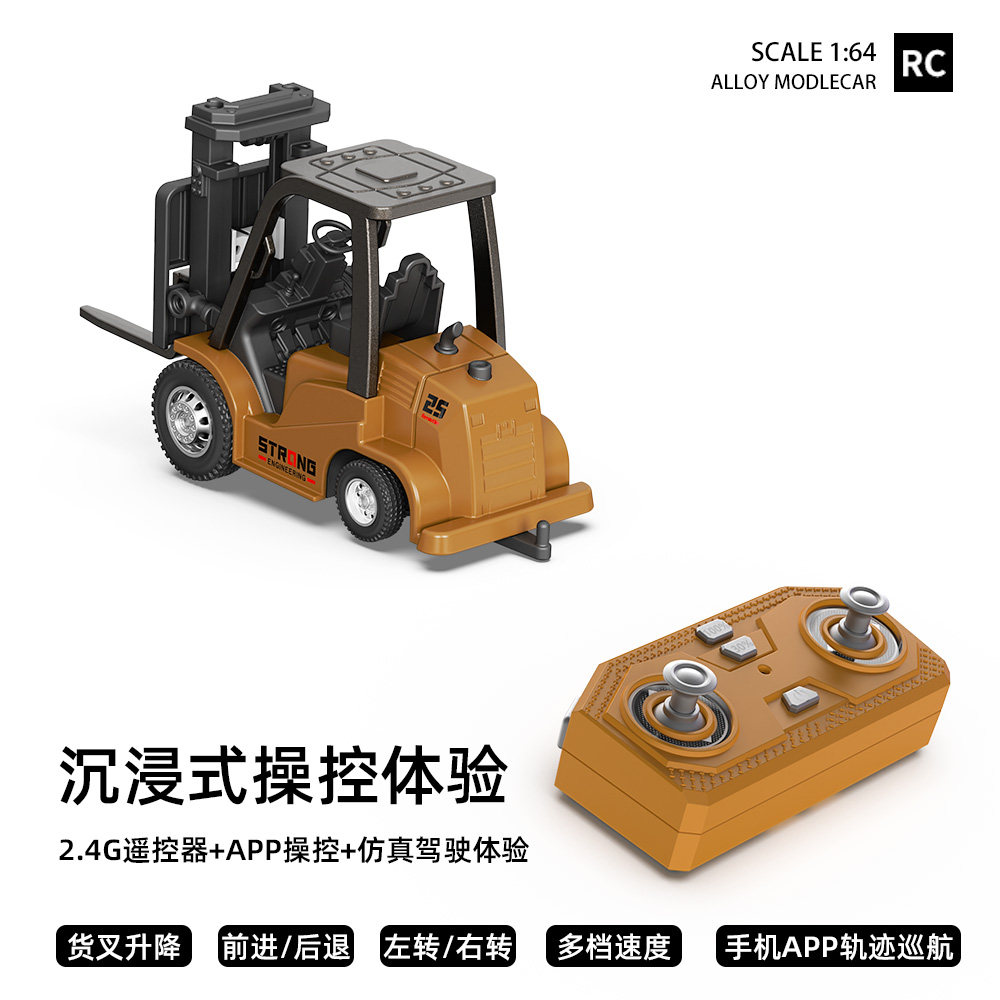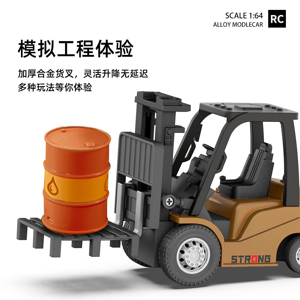 合金迷你遥控叉车挖掘机工程车儿童四驱rc玩具礼物全比例铲车桌面