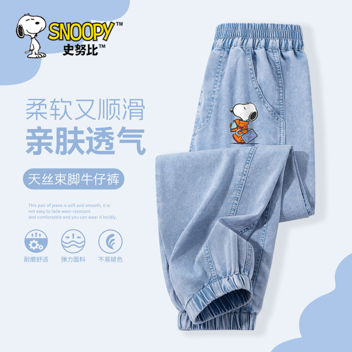 史努比天丝牛仔裤男童夏天裤子男孩冰丝防晒裤夏季薄款儿童防蚊裤