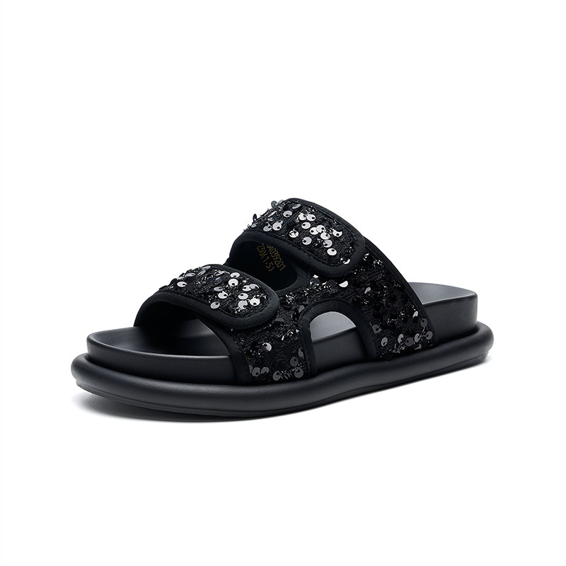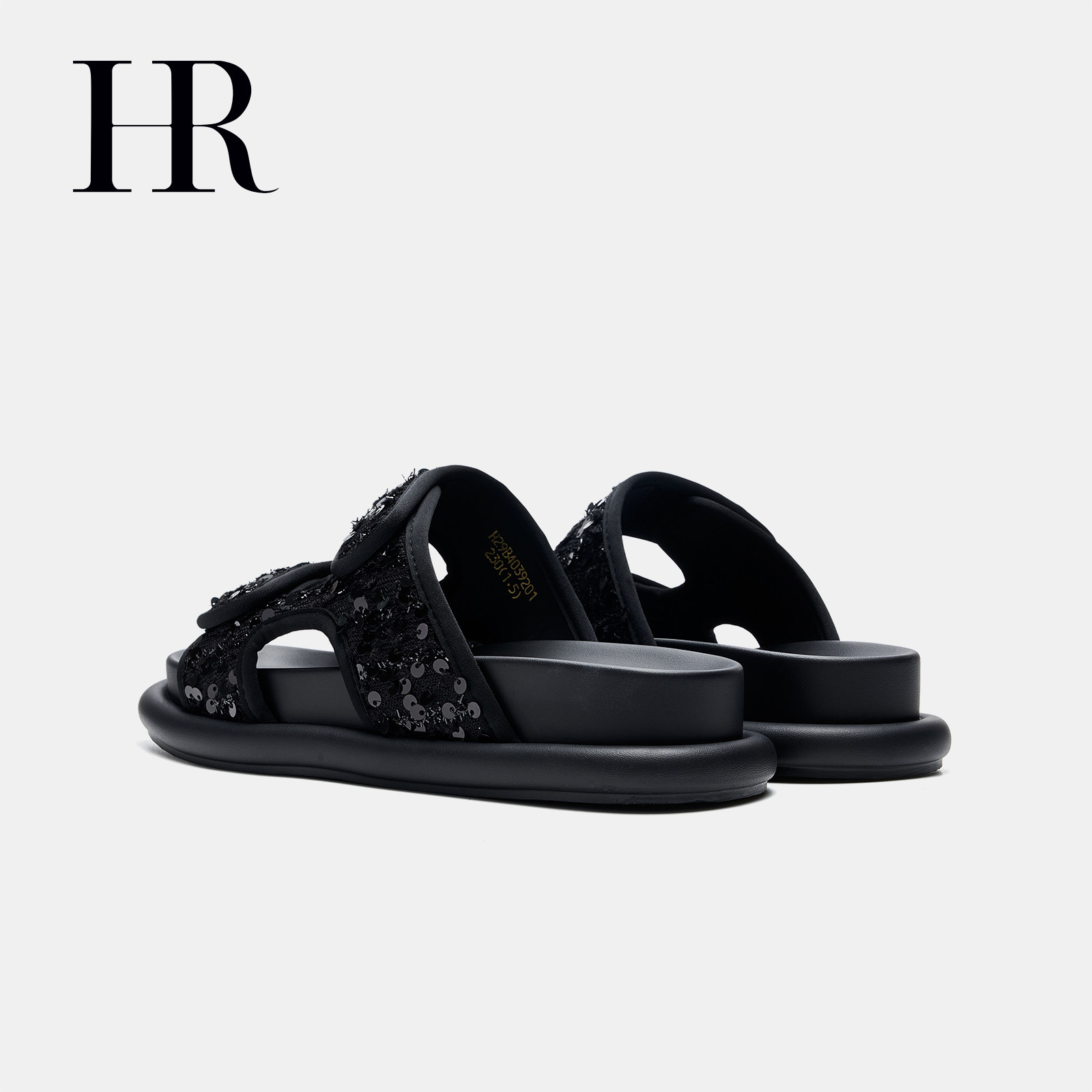 HR赫莲娜女鞋子2025年夏季新款原创小众亮片拖鞋外穿时尚一字拖鞋