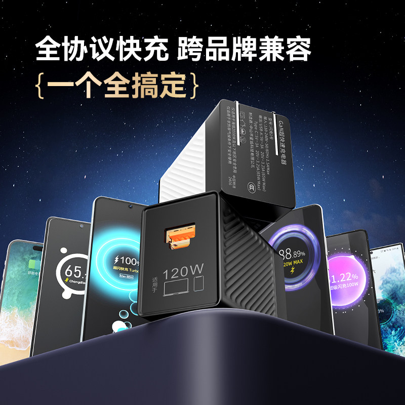 通克120W协议全兼容氮化镓快充电器适用VIVOiqoo华为荣耀一加OPPO小米红米苹果手机PD65W超级闪充折叠通用