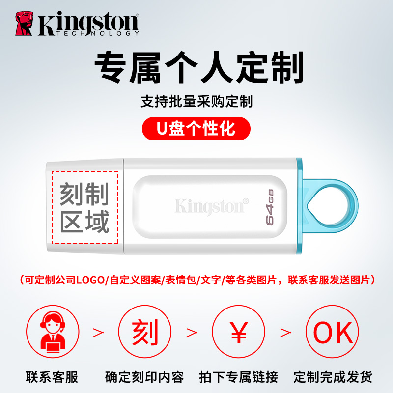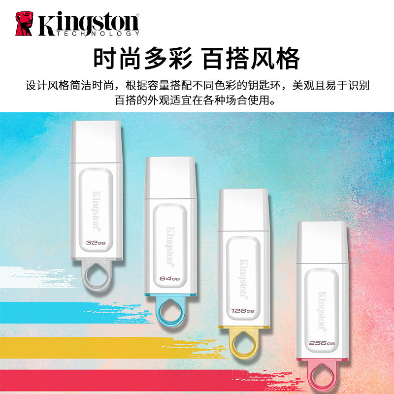 金士顿u盘64g汽车载256g大容量手机电脑官方正品白DTX店128gb优盘