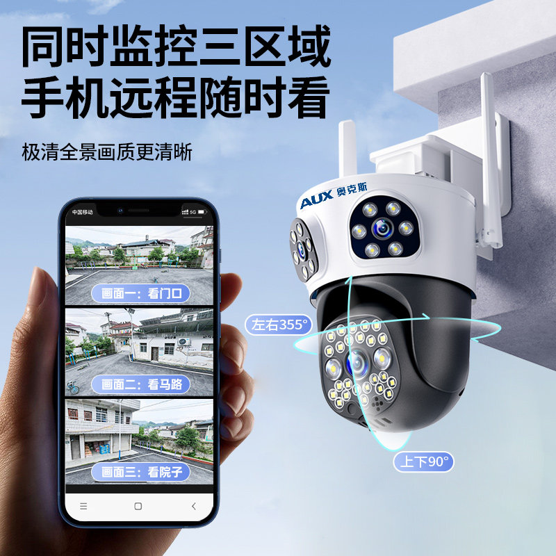 奥克斯监控器360度无死角室外摄像头无需WiFi4G家用手机远程无线