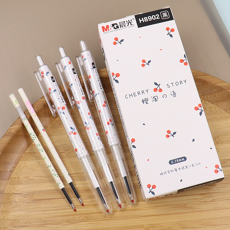 晨光AGPH8902樱淘の语按动中性笔0.38全针管樱桃少女学生签字水笔