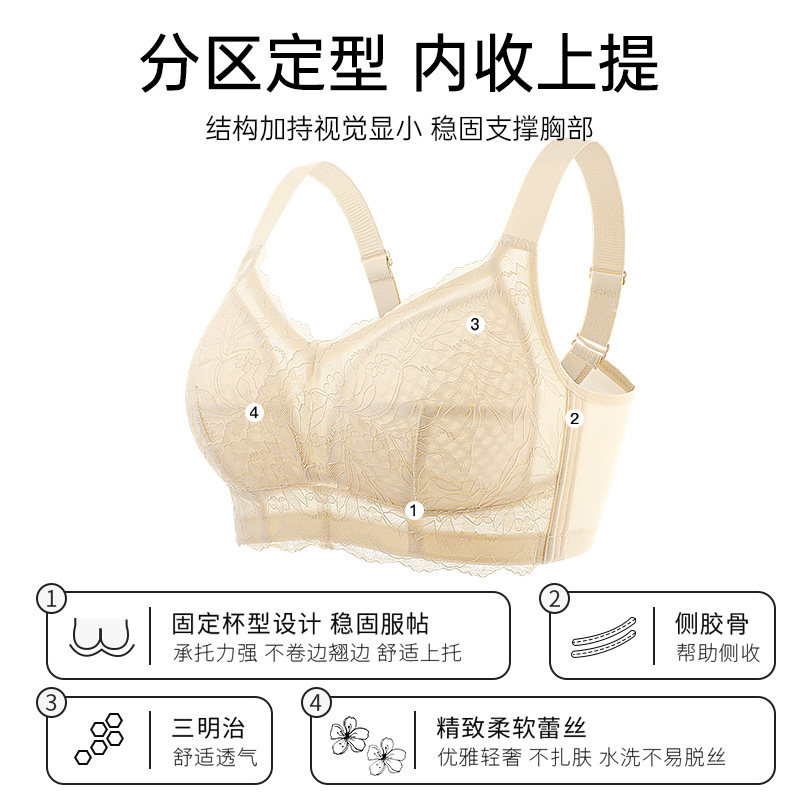 润微提拉女王内衣女大胸显小无痕大码调整防下垂收副乳粉底液文胸