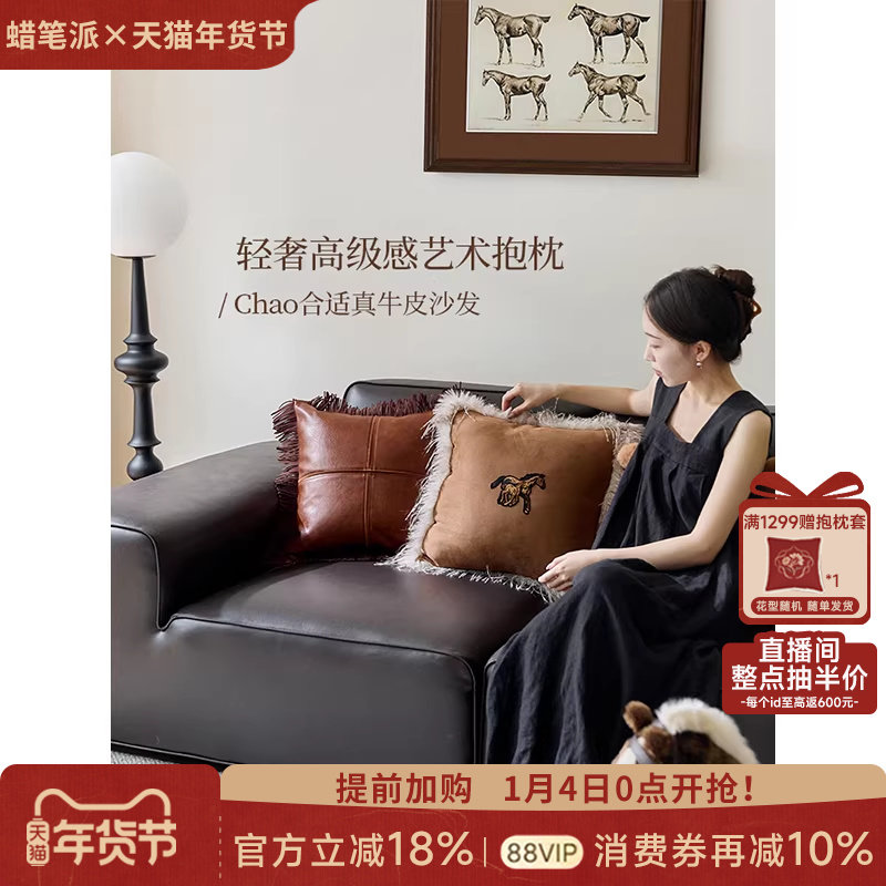 蜡笔派跃马刺绣抱枕暖手定制轻奢高级感客厅沙发床头靠垫马年新款