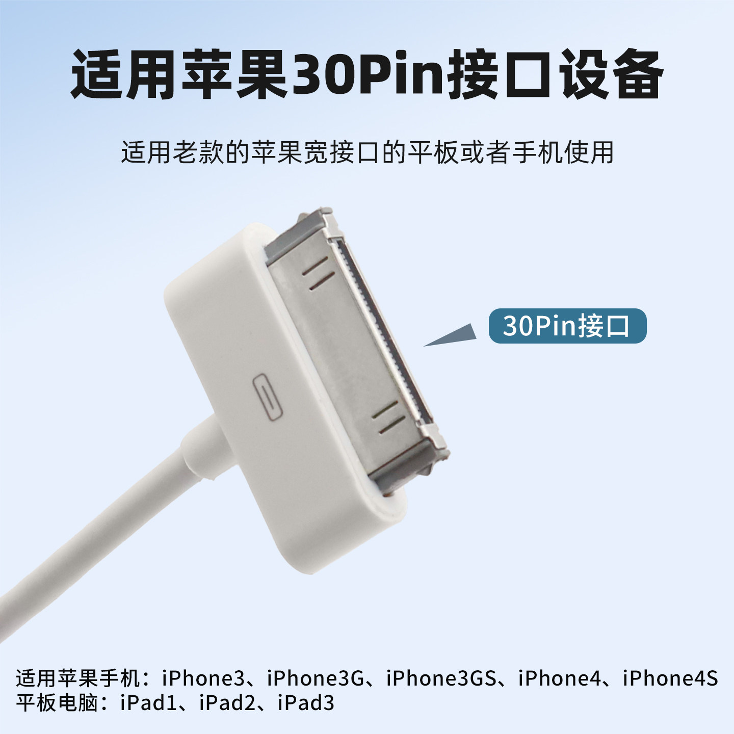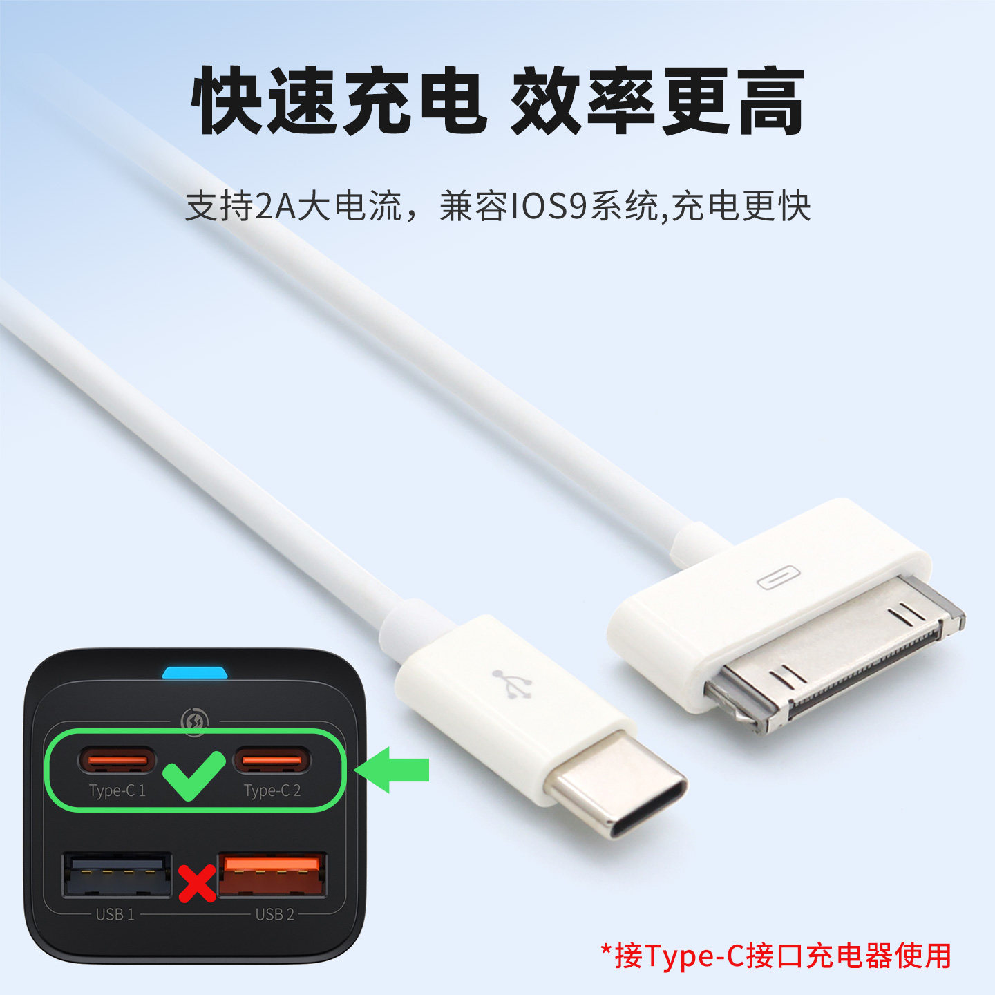 typec转30pin接口充电线USB数据线老款手机宽口插头适用苹果iPhone 3/3G/4/4S平板iPad 1/2/3 iPod充电器连接