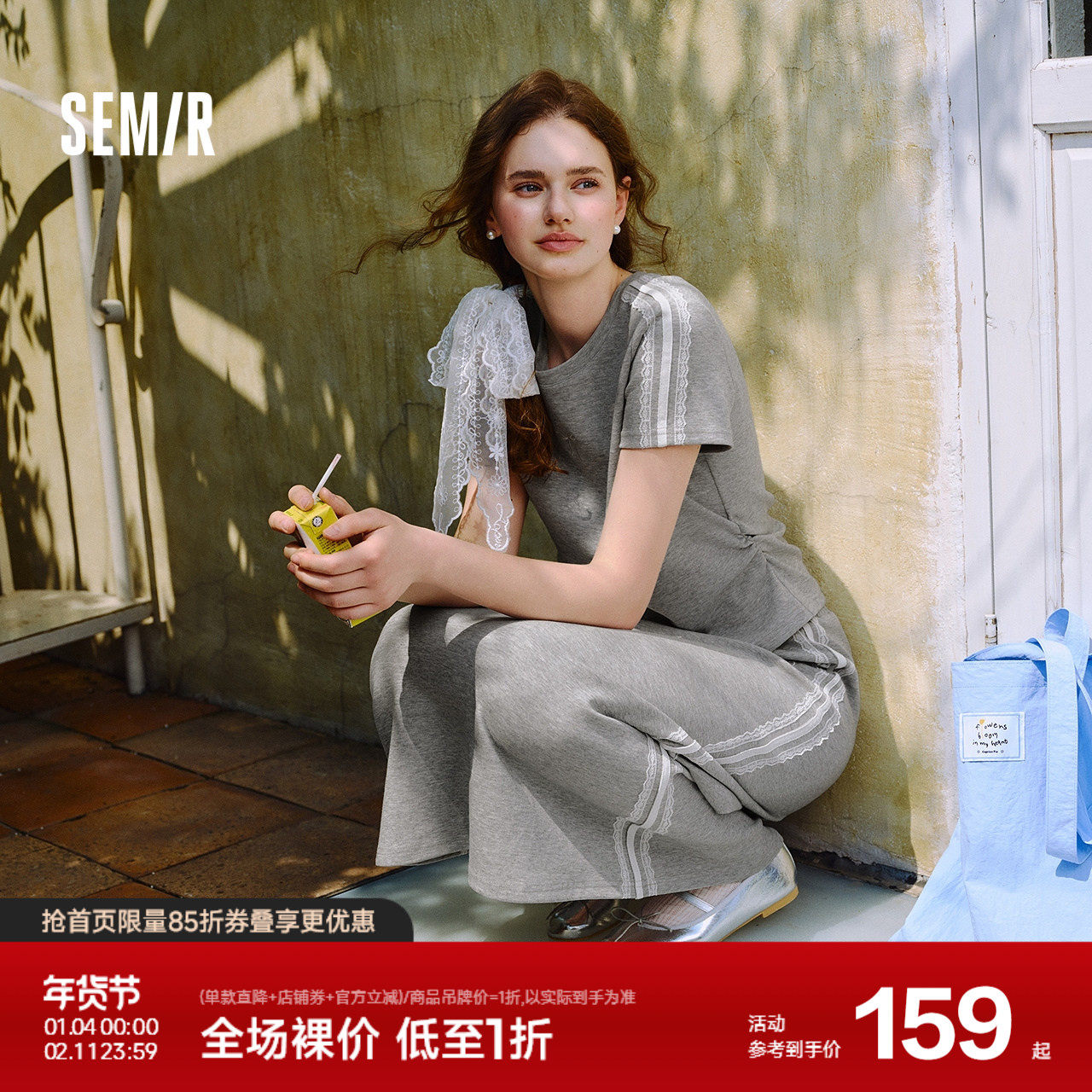 森马套装女小心机短上衣高腰半身裙2025新款夏拼接蕾丝两件套显瘦