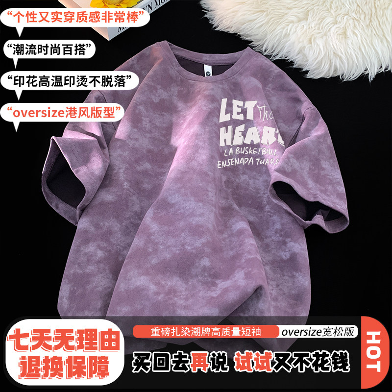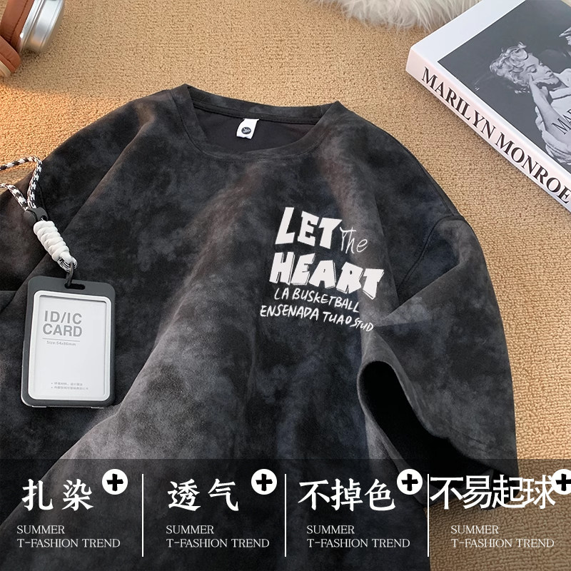 美式扎染短袖T恤男2025新款夏季宽松ins青少年重磅潮流圆领上衣