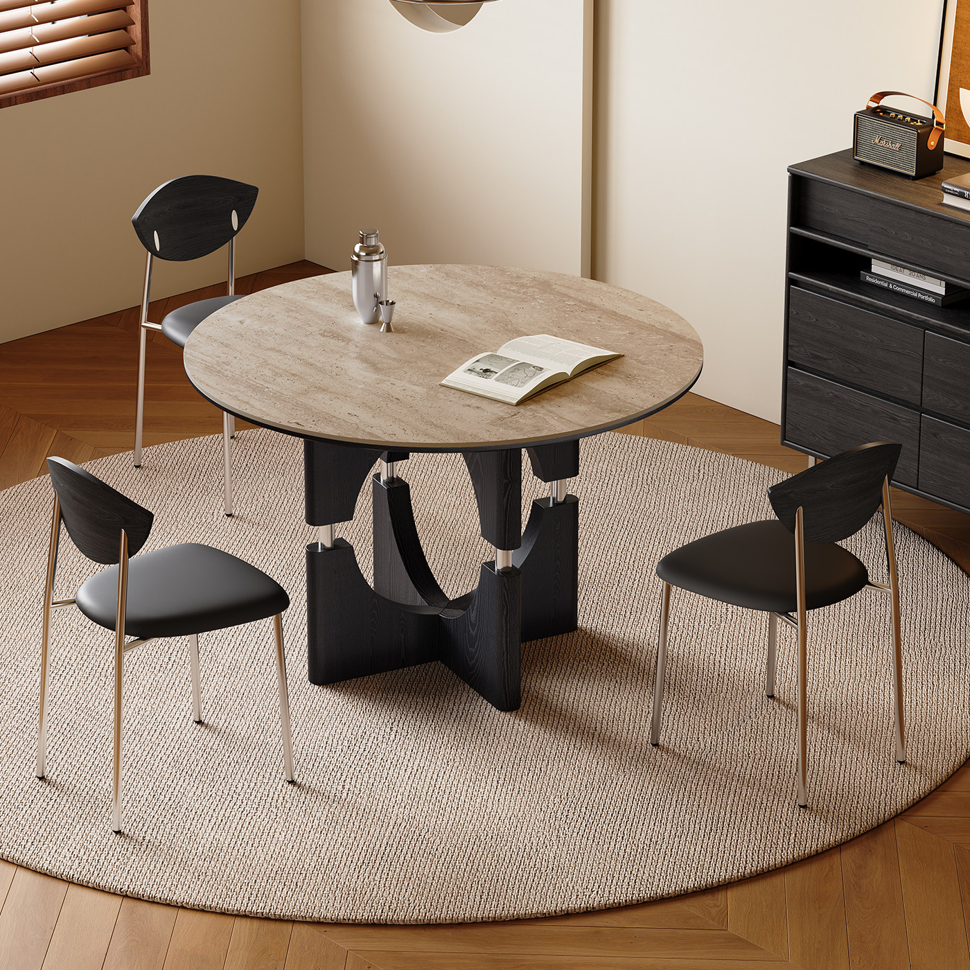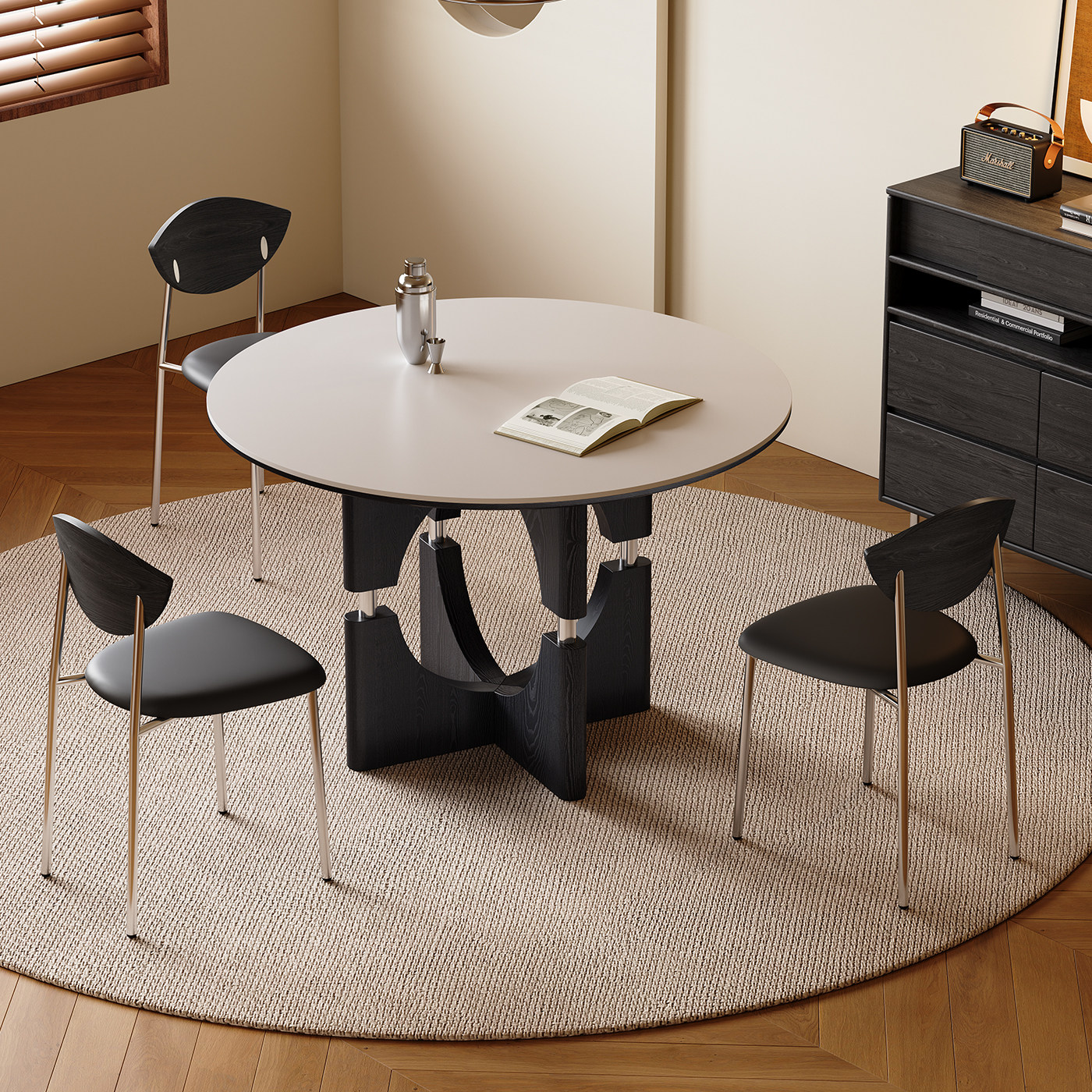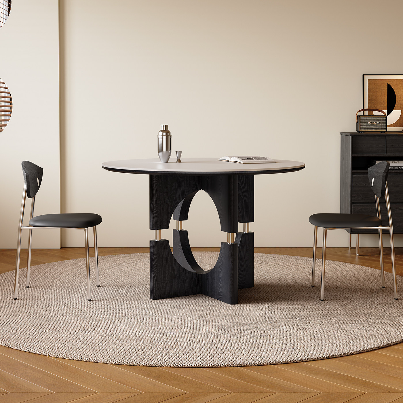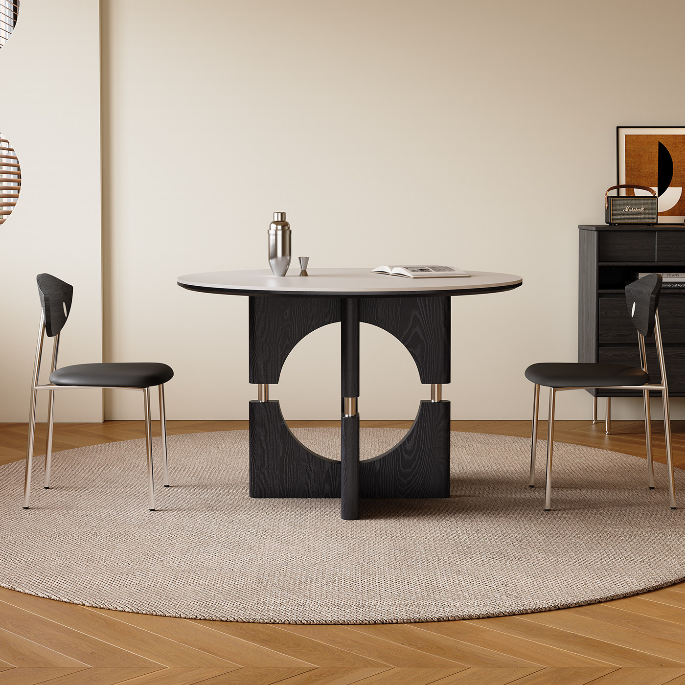 圆形实木餐桌小户型家用复古黑色饭桌2025新款包豪斯洞石岩板餐桌