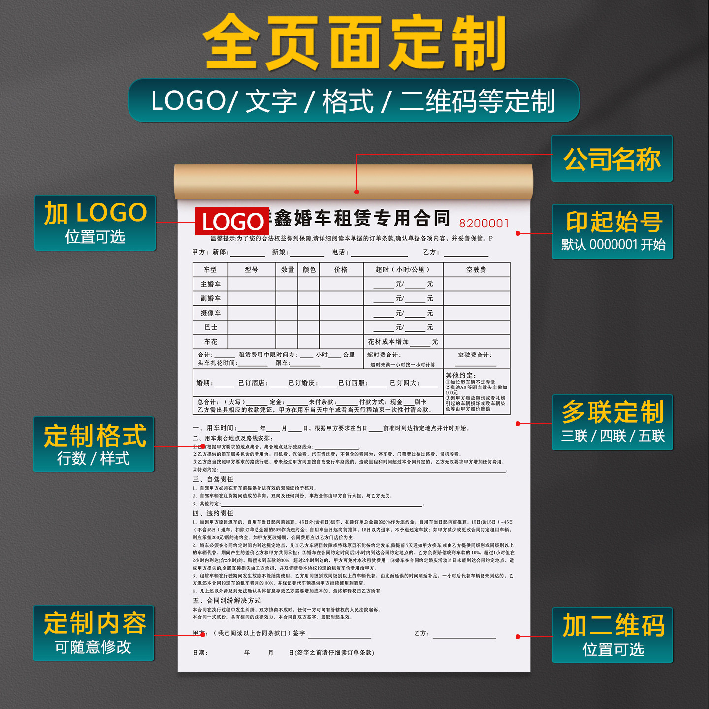 【婚车租赁合同】婚庆店结婚用车装饰租用协议车队迎亲租车出车单据婚礼策划预约服务单婚纱拍摄预定押金收据
