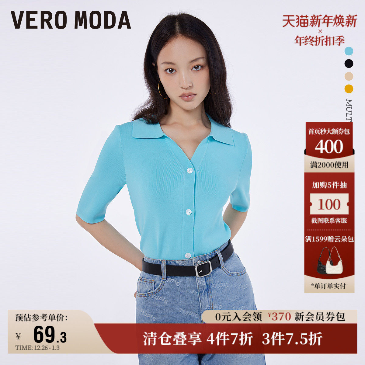 Vero Moda奥莱毛衣针织衫秋冬清仓高街纯色五分Polo衫上衣女流行