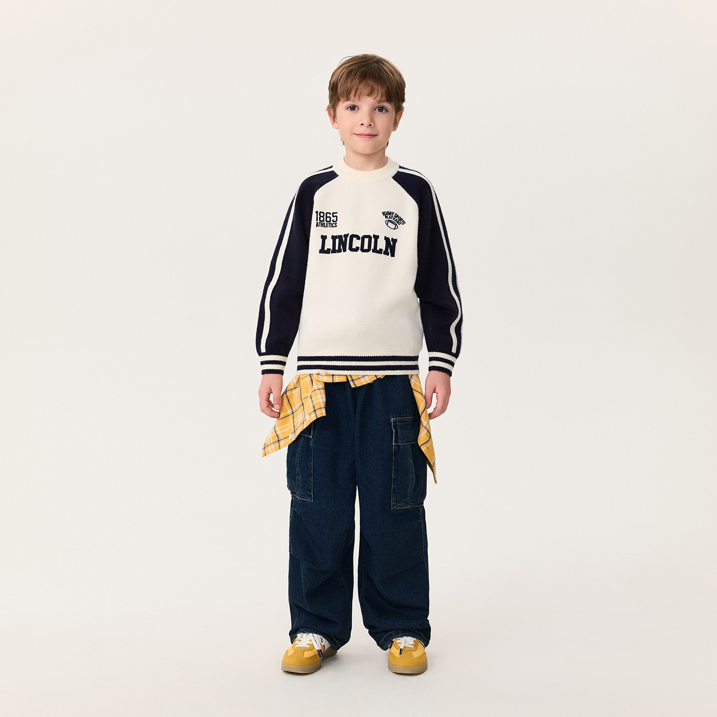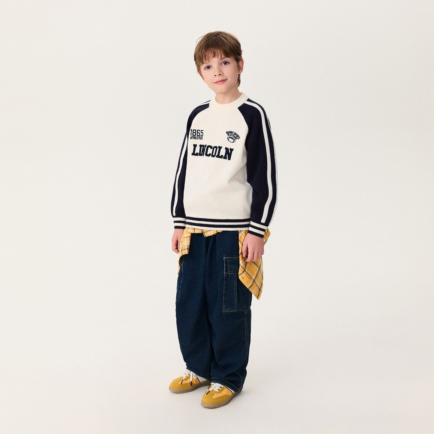 马克珍妮男童复古运动风软糯毛衣儿童针织衫2025年冬装新款551902