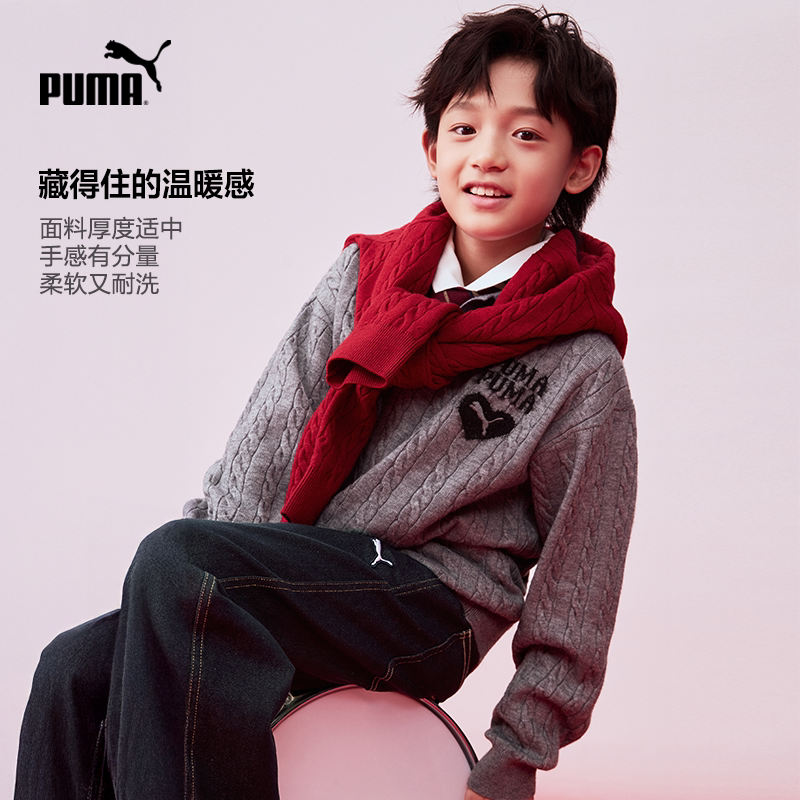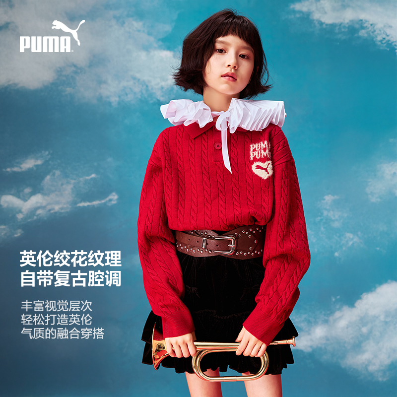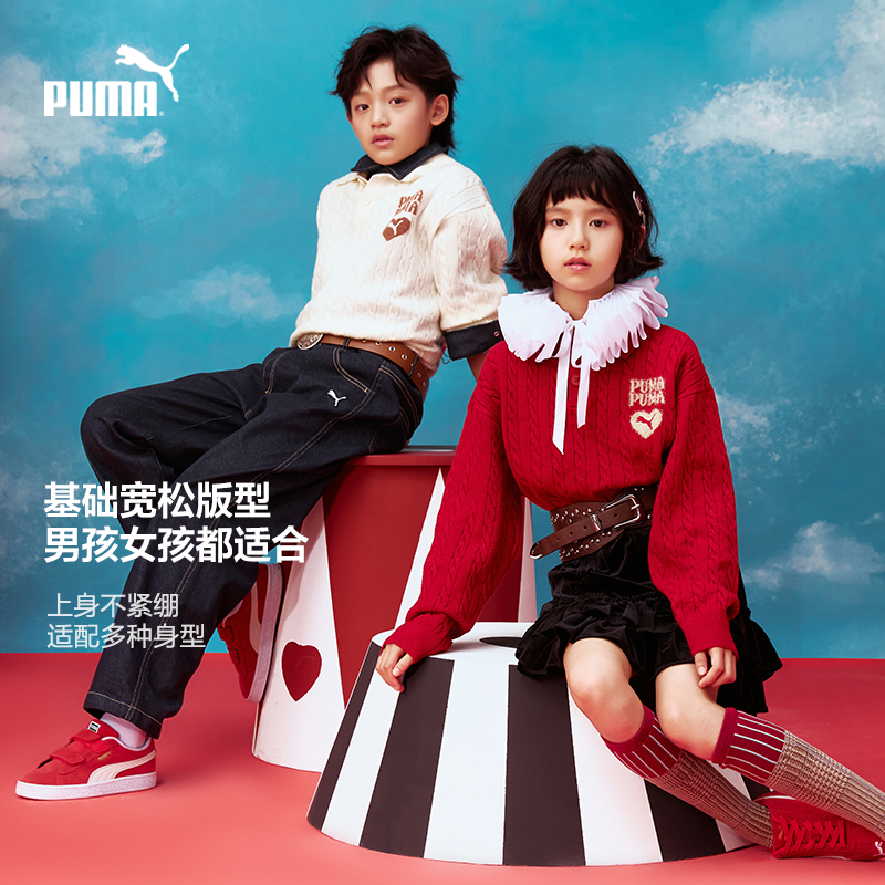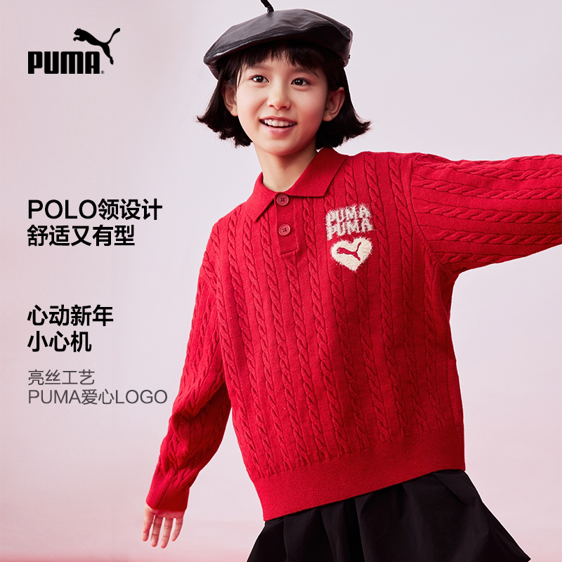PUMA彪马官方新年款儿童童装毛衫休闲运动风休闲翻领毛衣针织衫