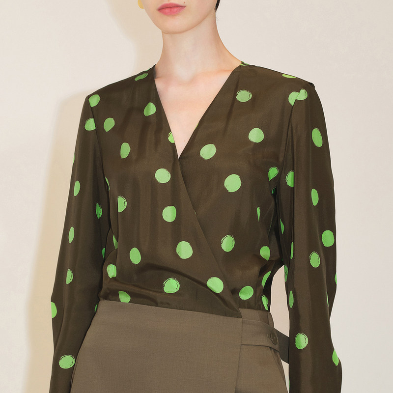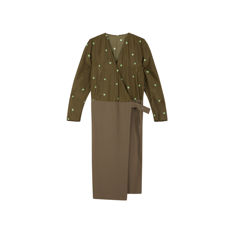 LESS波点拼接裙裤女法式V领个性设计感宽松连衣裙裤2M7F12880