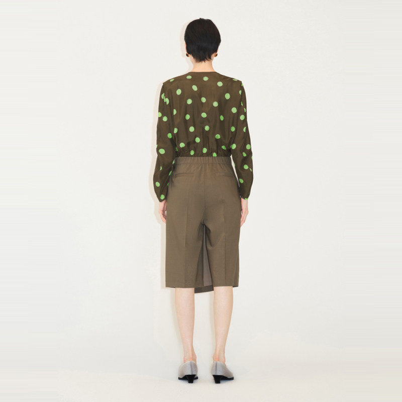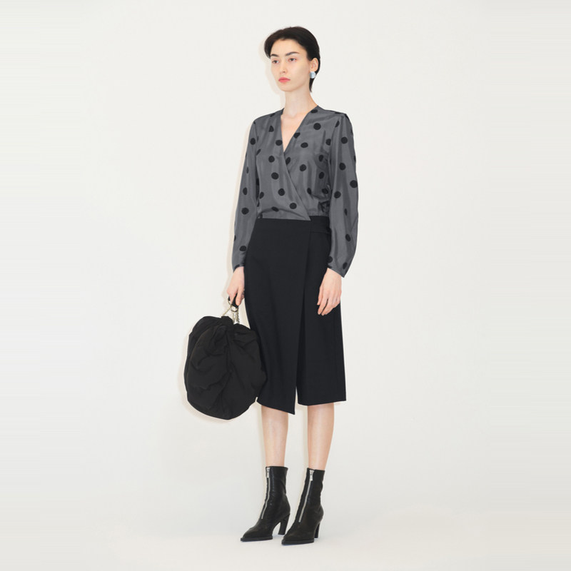 前裙片的设计让裤装呈现如优雅裙装的视觉