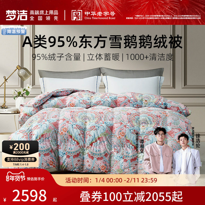 梦洁家纺A类95鹅绒被羽绒被子被芯冬厚被蓬松加厚保暖双人25新款