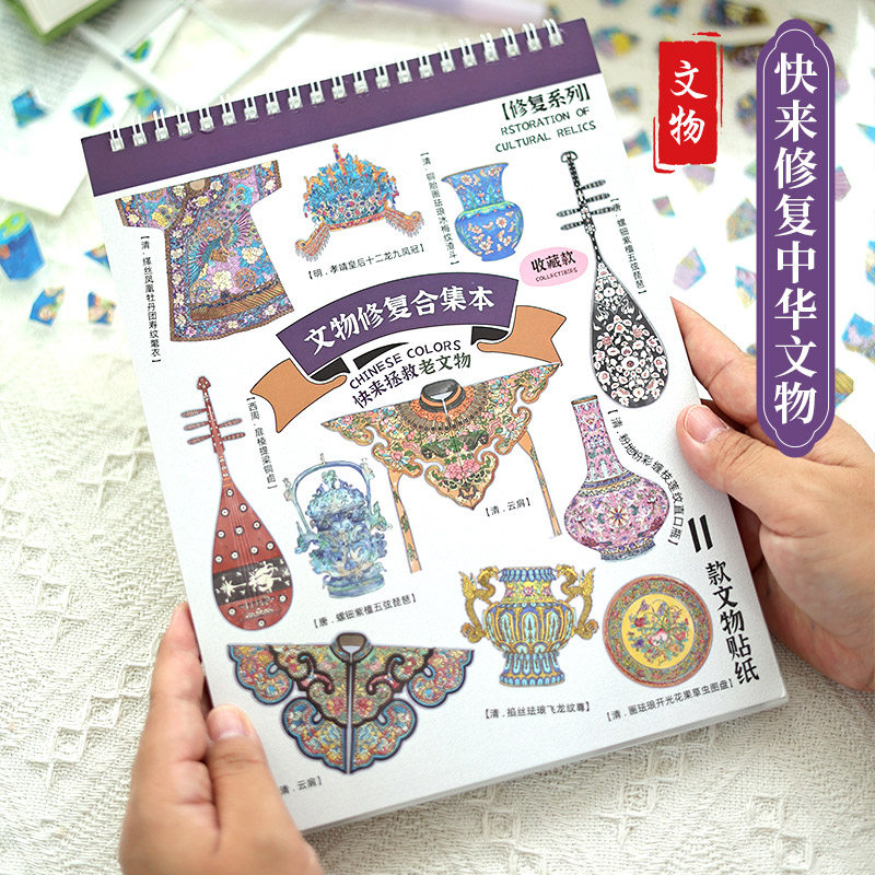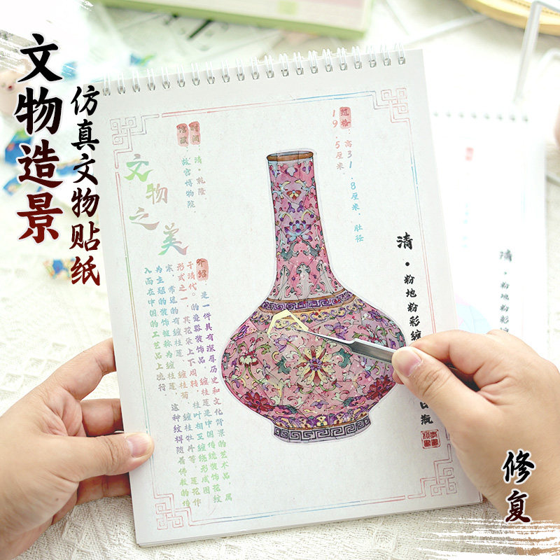 11款不重样文物修复合集本解压造景微缩贴纸diy手工手帐创意贴画儿童益智贴纸安静书贴画古董旧物修复手工