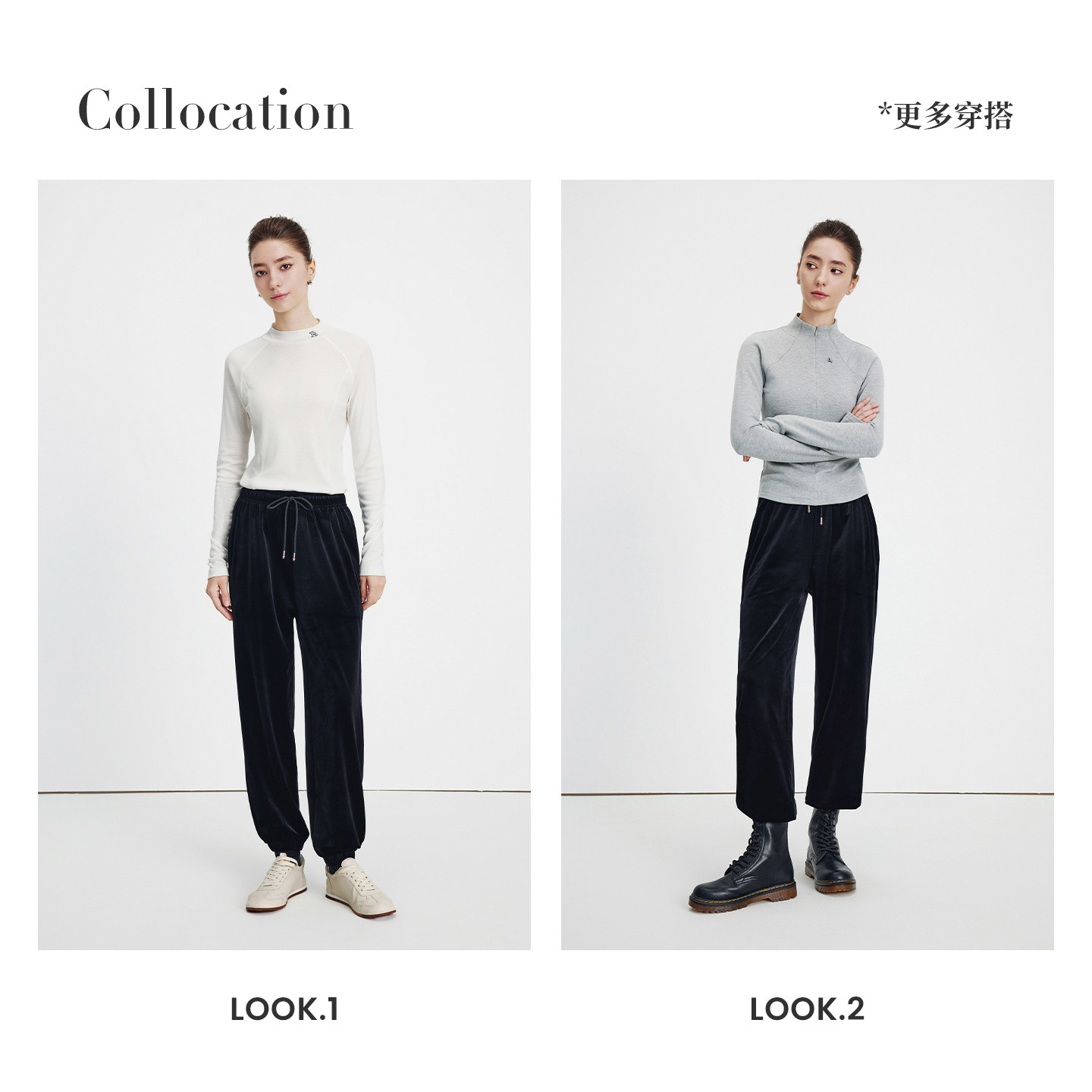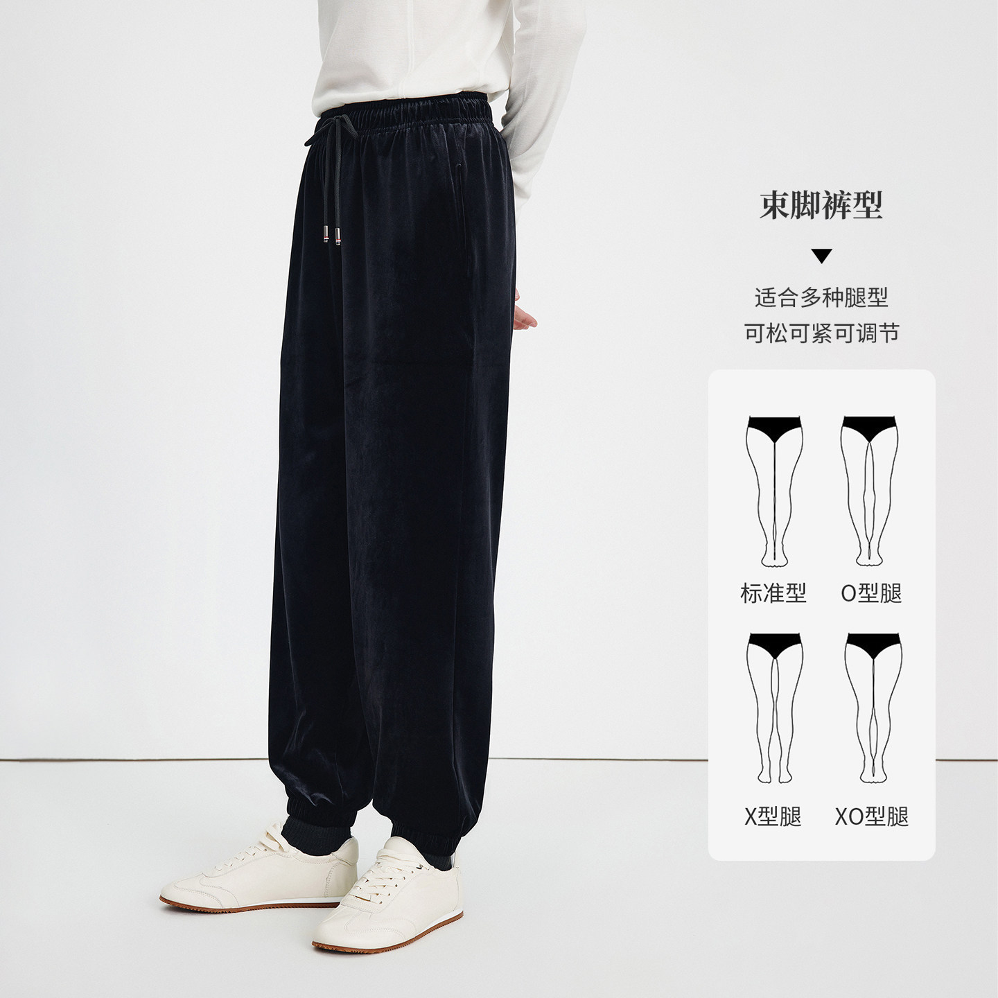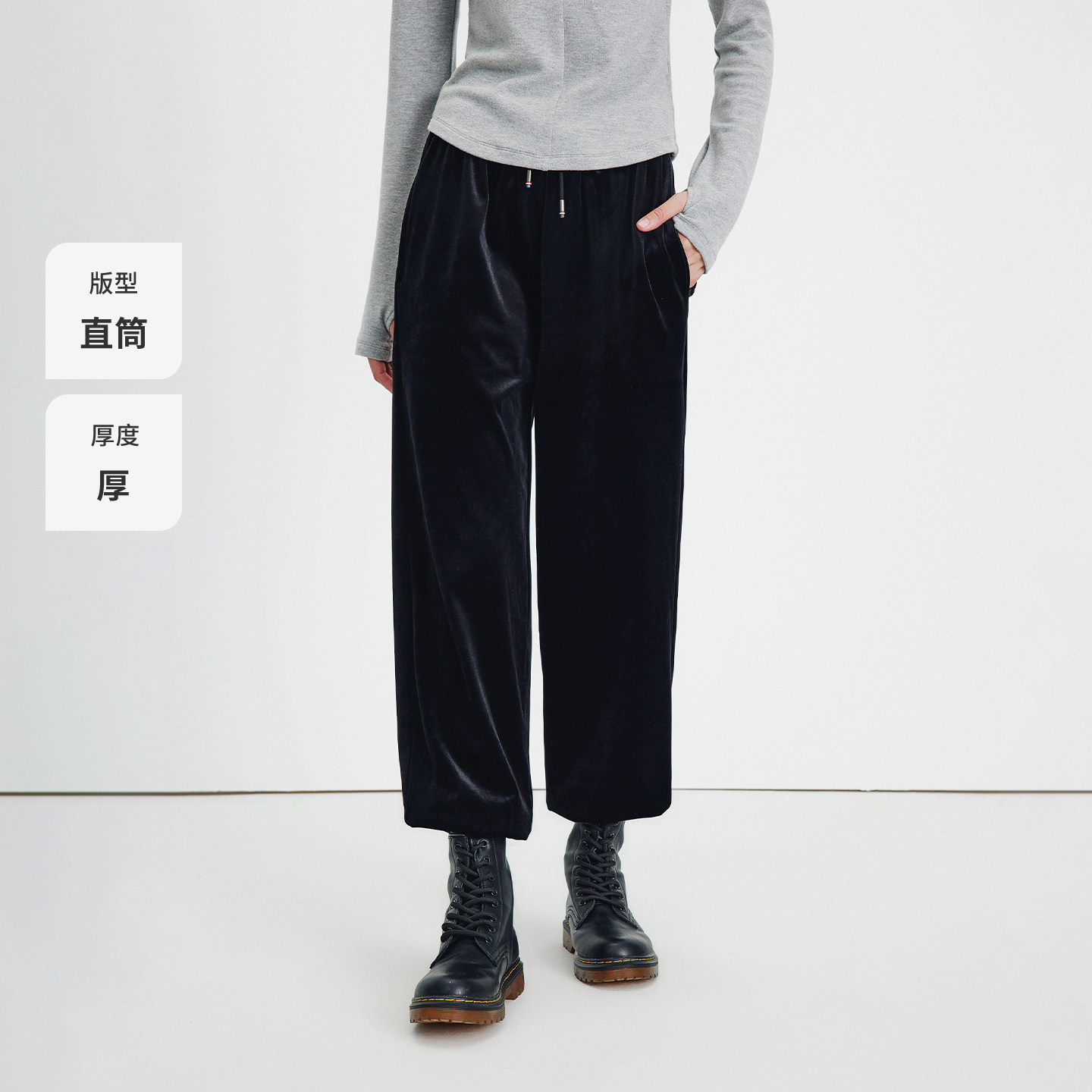 Navigare意大利小帆船冬季金丝绒休闲长裤女士黑色高腰显瘦直筒裤