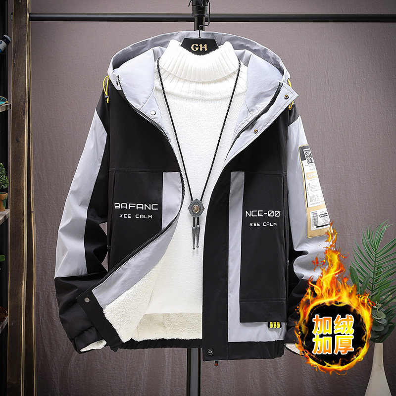 工装加绒加厚外套男ins潮青少年学生秋冬季百搭夹克休闲羽绒棉服