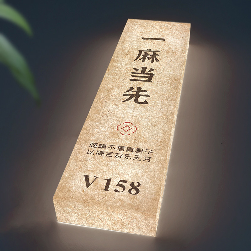 高档麻将馆发光门牌定制新中式风格带灯提示牌桌游包厢名称标示牌