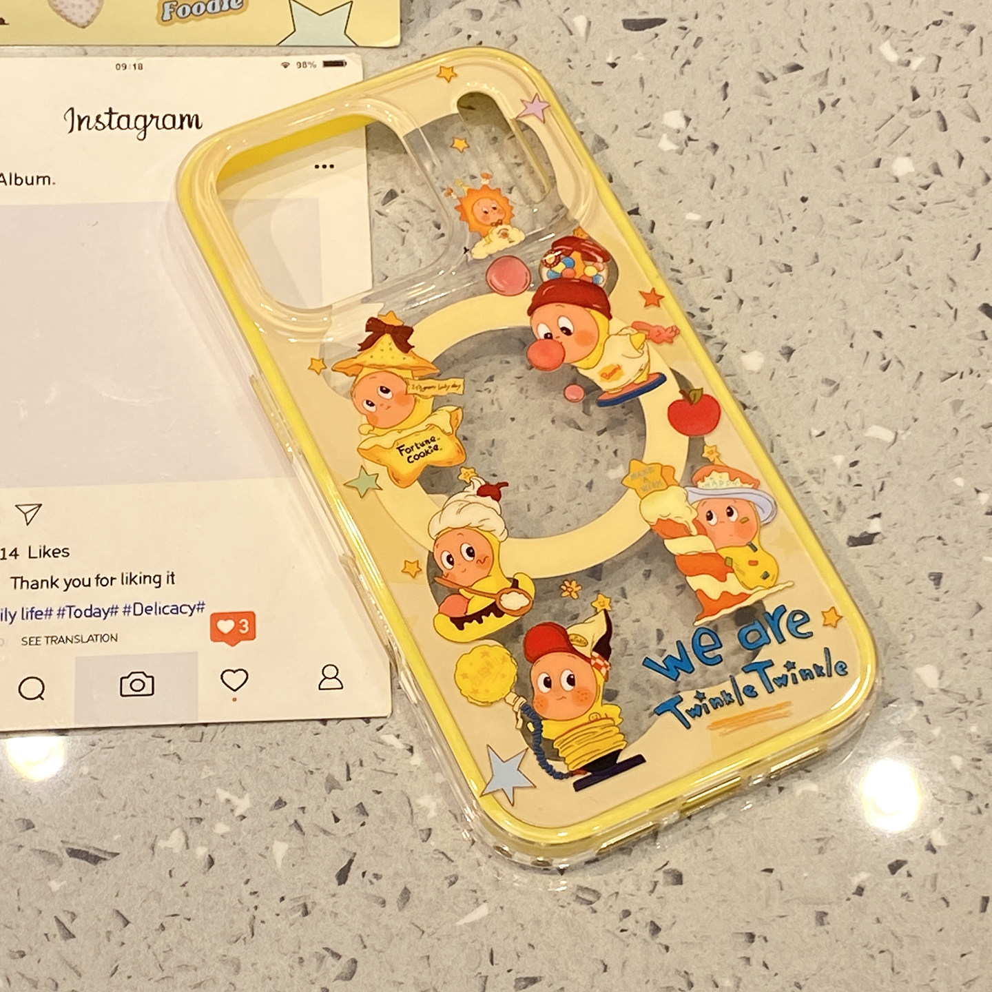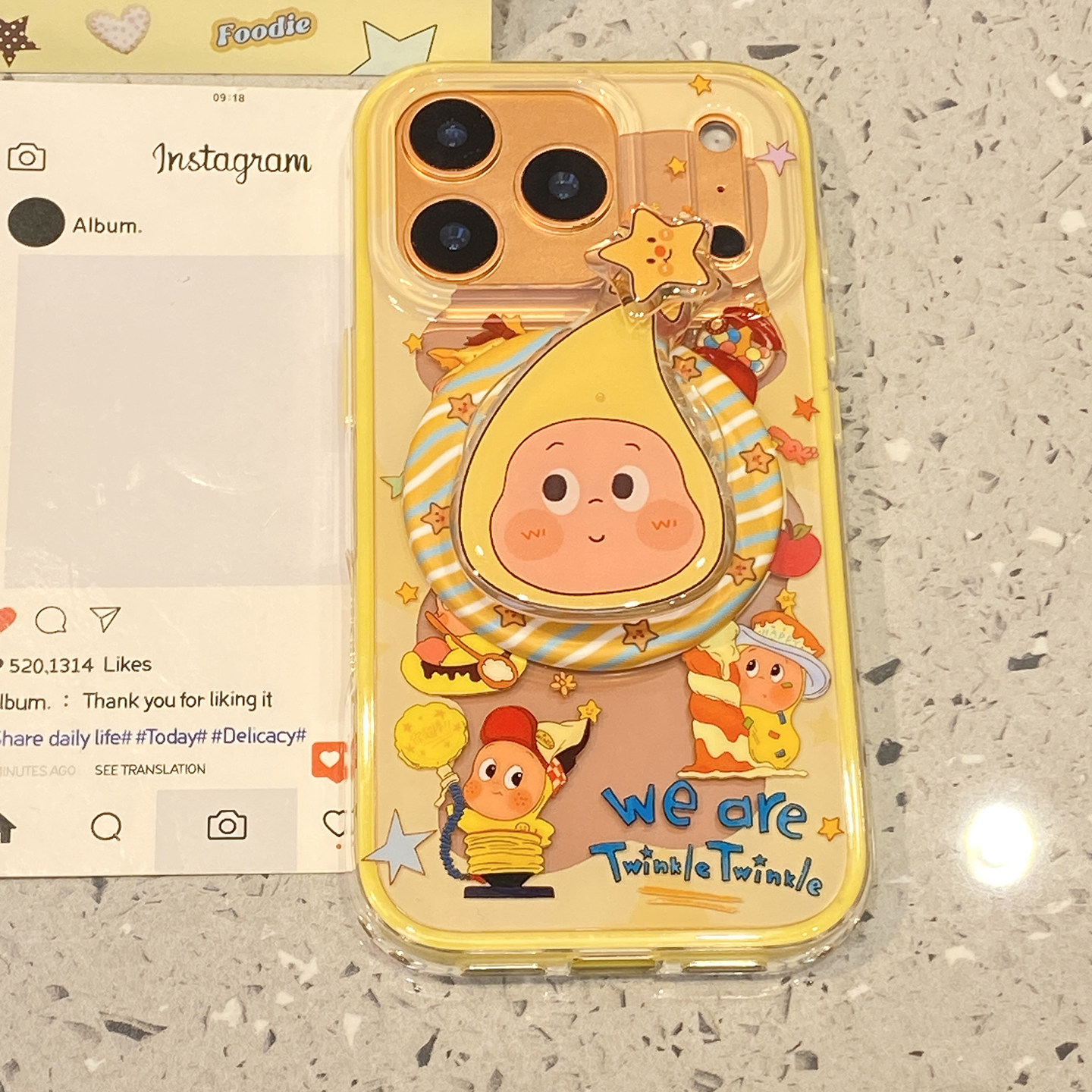 可爱黄色围边星星人磁吸支架适用于苹果15手机壳iphone16保护套14透明13新款17promax全包16pro网红max手机套