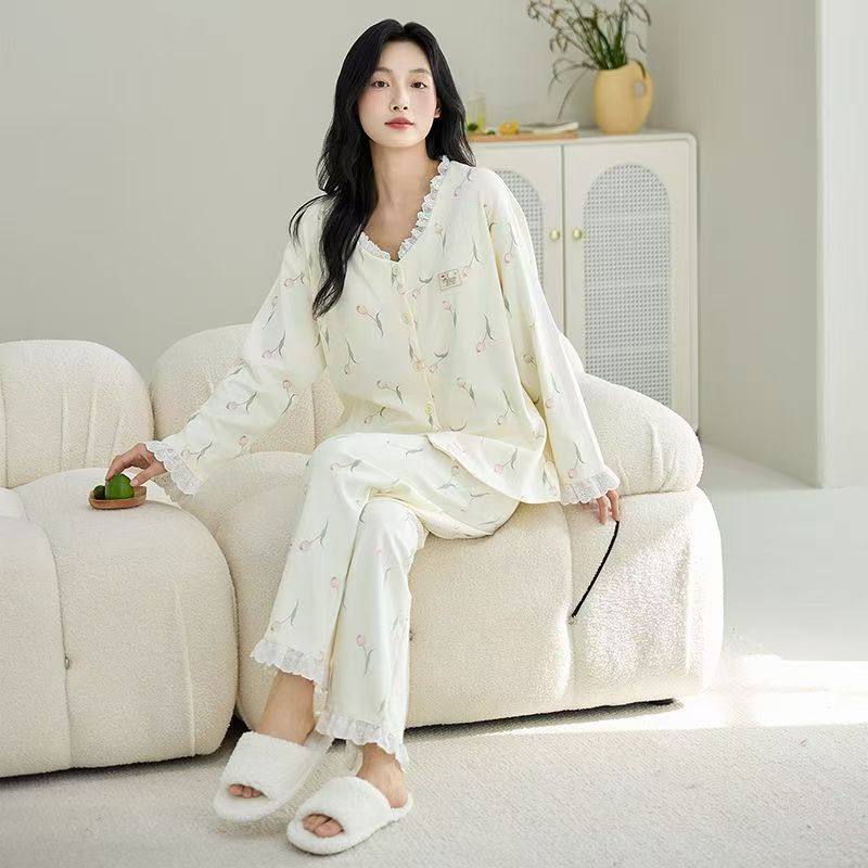 浪莎2025年新款睡衣女款春秋季纯棉长袖家居服秋冬薄款高级感套装