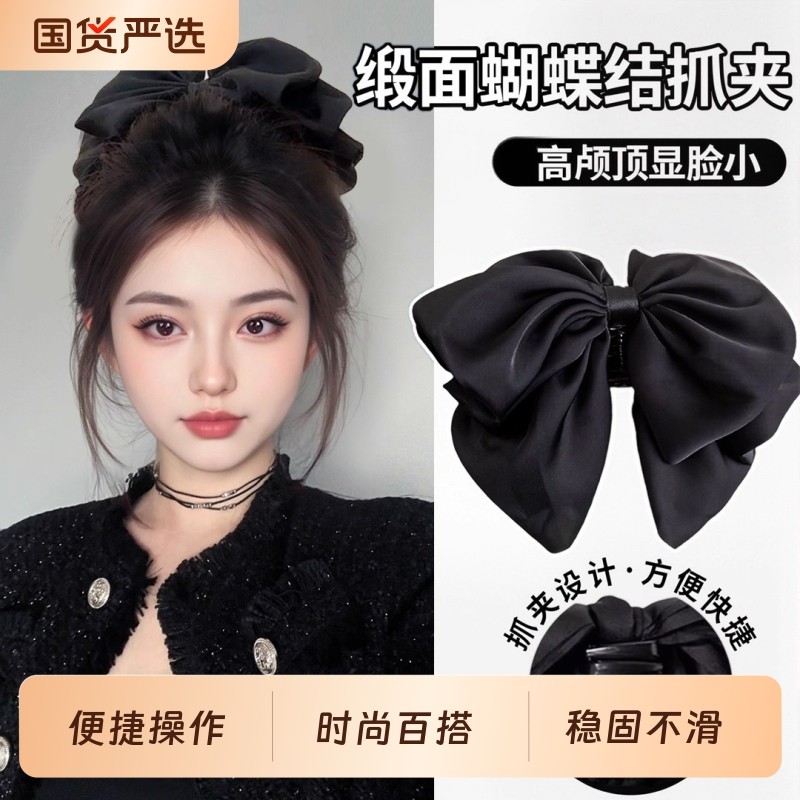 优雅感缎面蝴蝶结花苞抓夹女高级感后脑勺盘发马尾夹气质发夹发饰