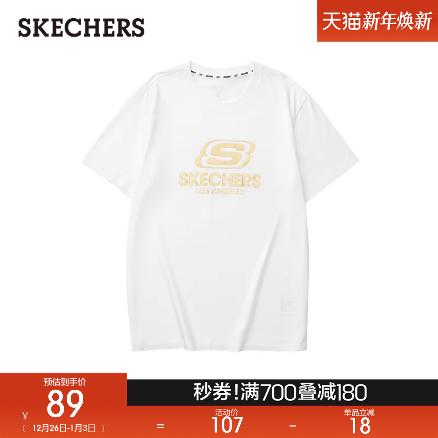 Skechers斯凯奇男女同款夏季针织圆领舒适百搭简约全棉短袖T恤衫